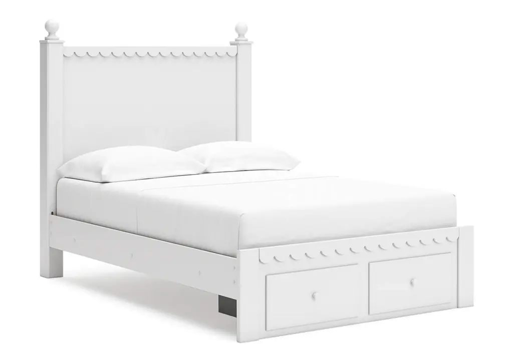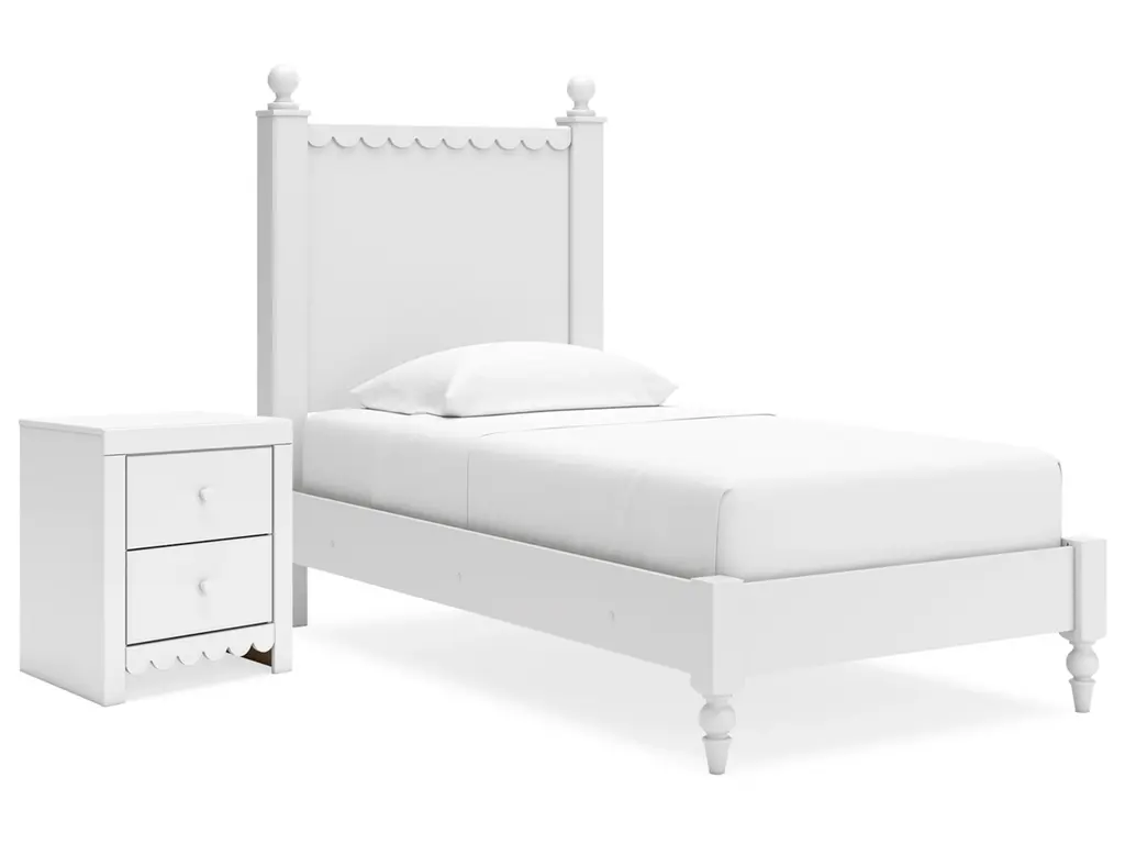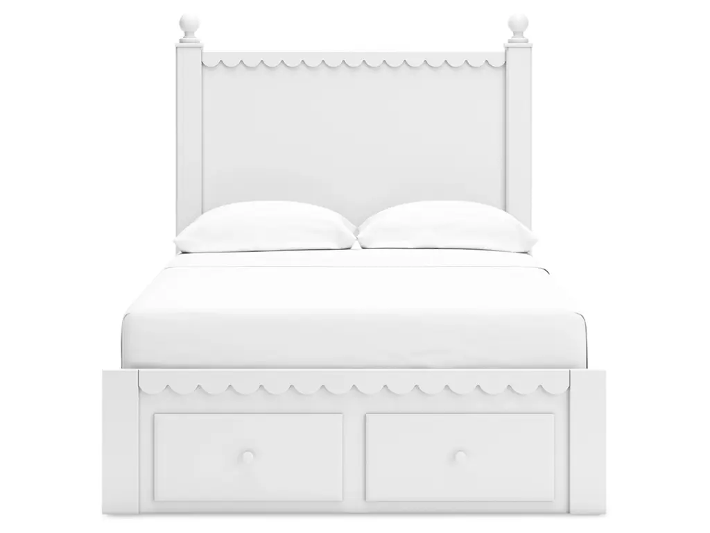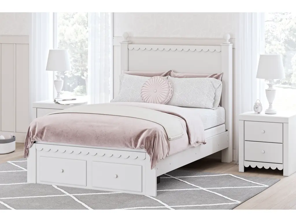 Make morning or bedtime that much more magical with the Mollviney bedroom package. Charmingly cute with its scalloped detailing, it appeals to both her sense of playful whimsy and your love for modern design. A crisp white finish gives you the versatility to pair the set with existing decor.