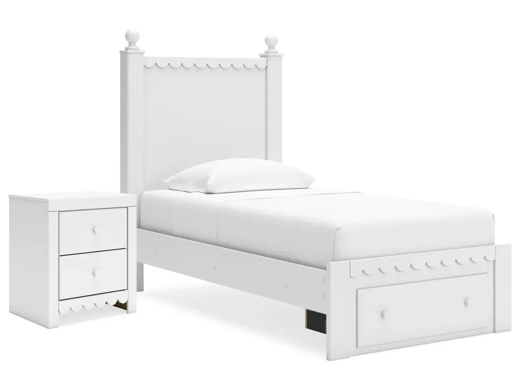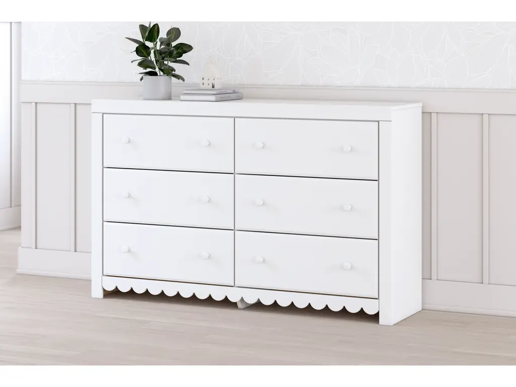 Make morning or bedtime that much more magical with the Mollviney bedroom package. Charmingly cute with its scalloped detailing, it appeals to both her sense of playful whimsy and your love for modern design. A crisp white finish gives you the versatility to pair the set with existing decor.