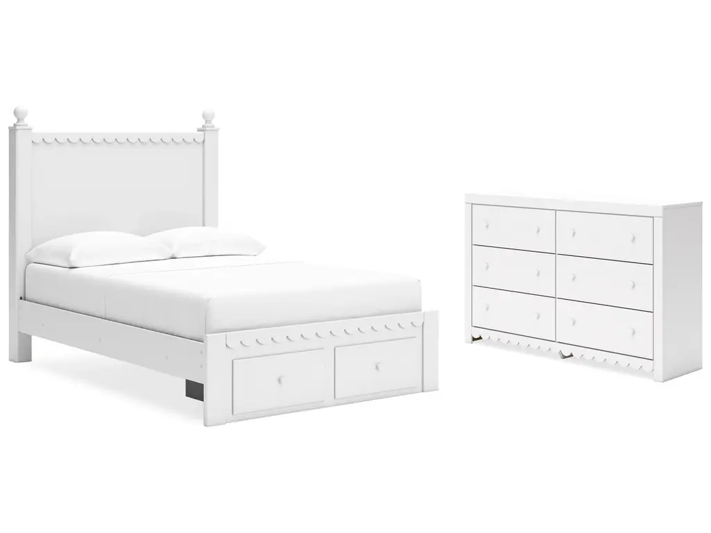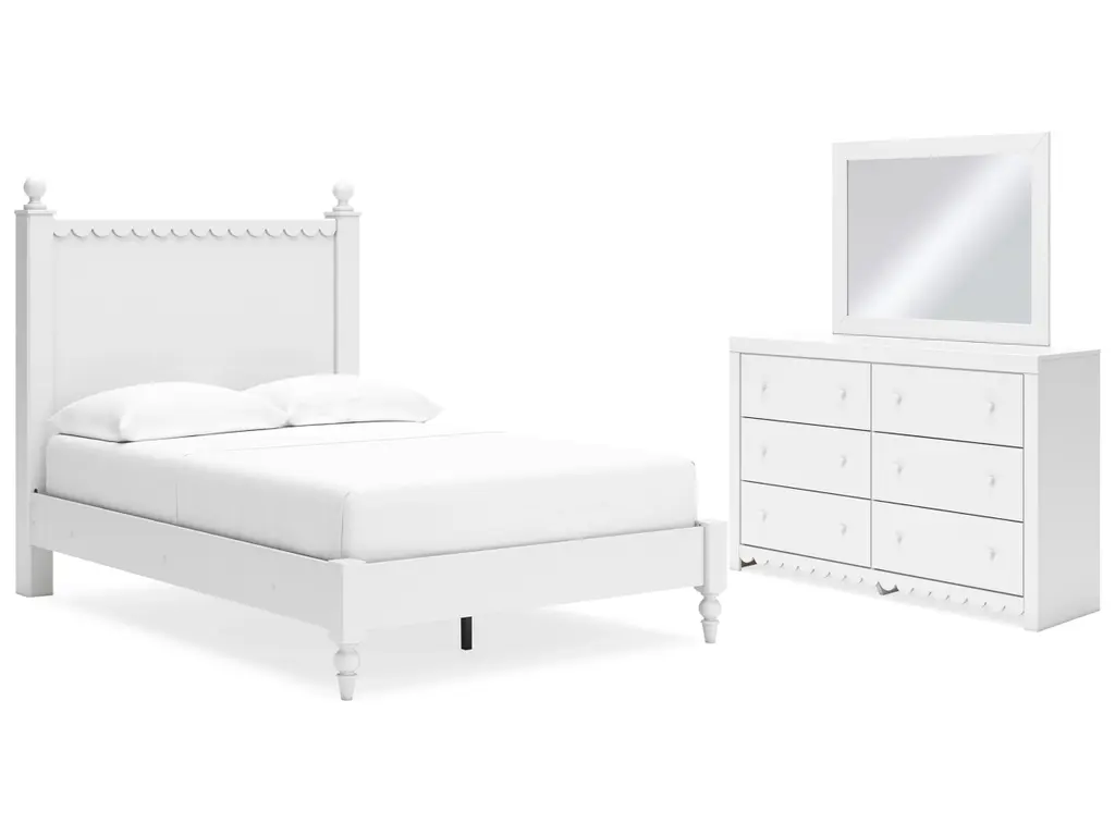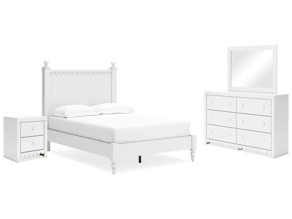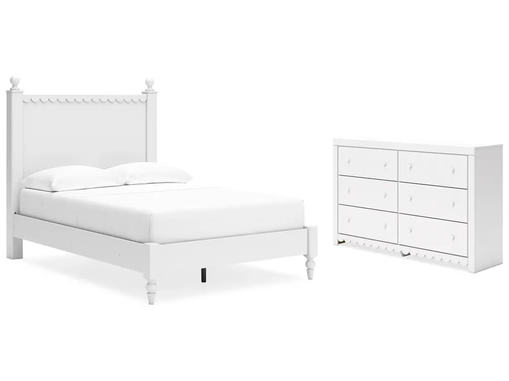 Make morning or bedtime that much more magical with the Mollviney bedroom . Charmingly cute with its scalloped detailing, it appeals to both her sense of playful whimsy and your love for modern design. A crisp white finish gives you the versatility to pair the set with existing decor.