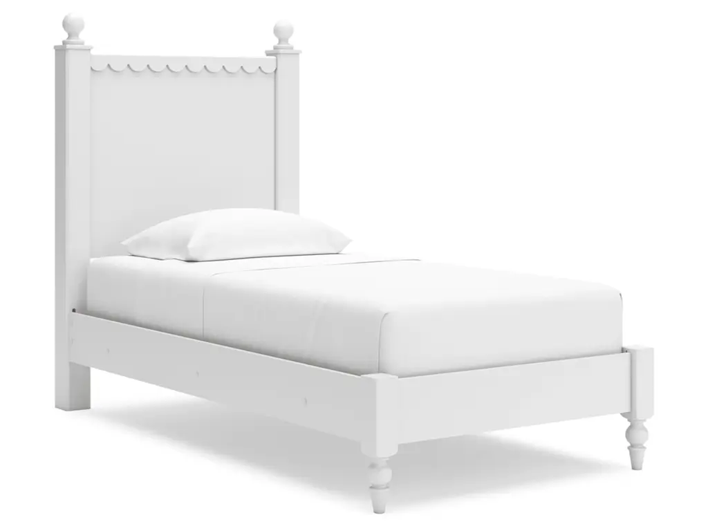 Make morning or bedtime that much more magical with the Mollviney bedroom package. Charmingly cute with its scalloped detailing, it appeals to both her sense of playful whimsy and your love for modern design. A crisp white finish gives you the versatility to pair the set with existing decor.