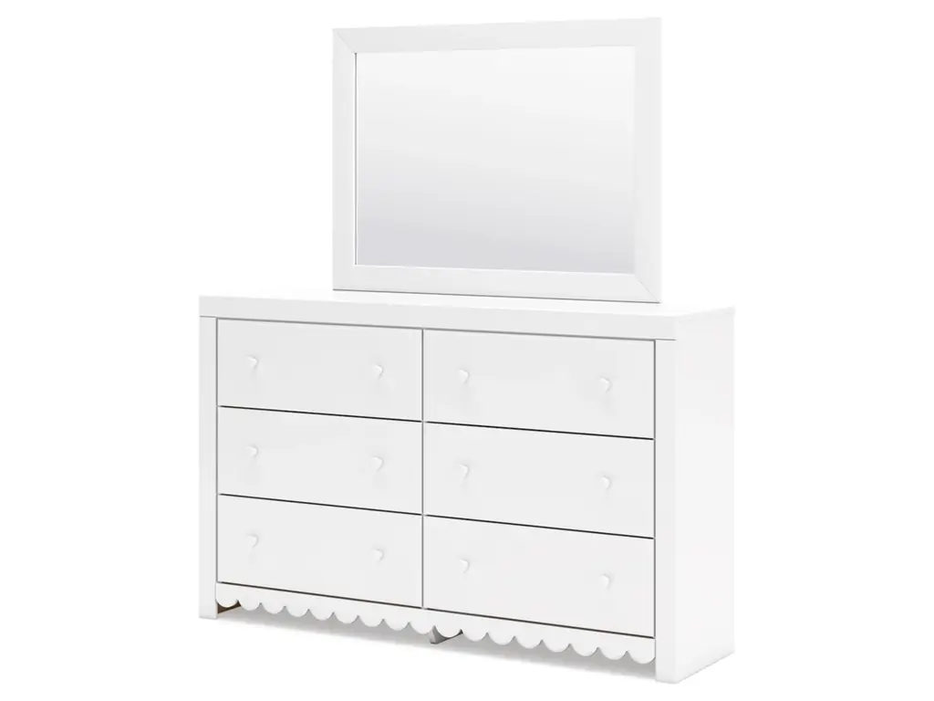 Make morning or bedtime that much more magical with the Mollviney bedroom package. Charmingly cute with its scalloped detailing, it appeals to both her sense of playful whimsy and your love for modern design. A crisp white finish gives you the versatility to pair the set with existing decor.