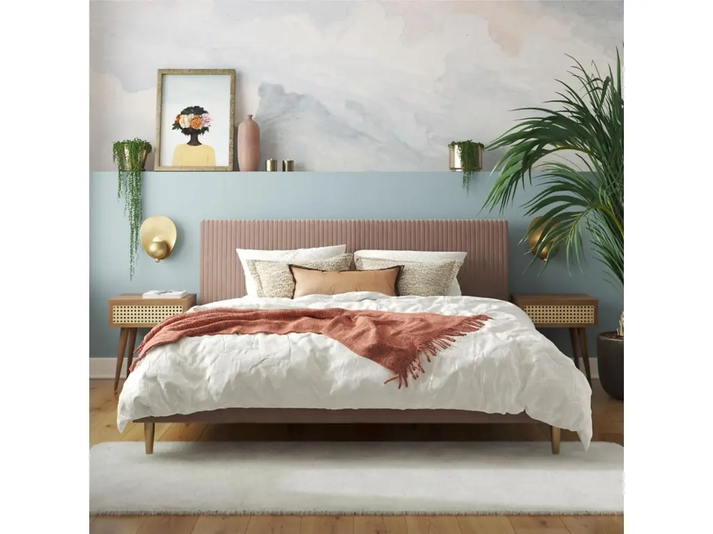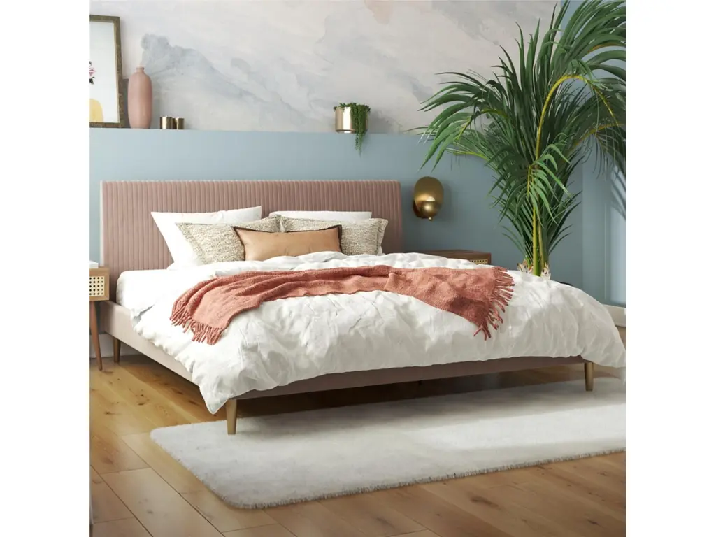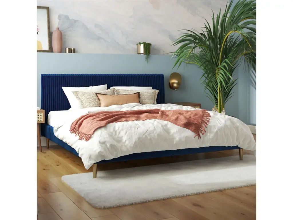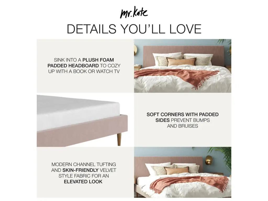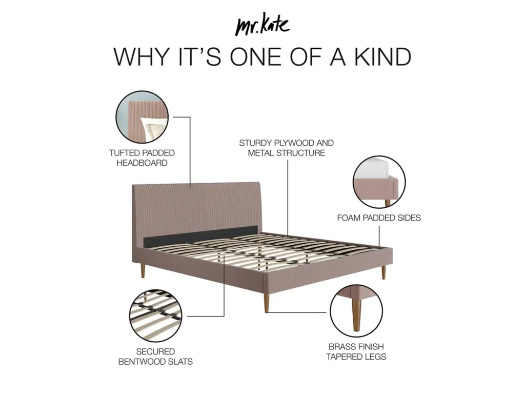 The Mr. Kate Daphne Bed doesn't take itself too seriously but it also doesn't mind being the center of attention. With its richly hued soft-to-the-touch upholstery, detailed vertical channel-tufted headboard, and brass toned tapered metal legs, the Daphne sets the stage for a memorable design experience. It combines its ultra-luxe sensibilities with a serene slim line profile that is bound to maximize the look of any tightly spaced bedroom. Sleep in comfortable bliss knowing that the Daphne has been well-built with a sturdy wooden frame that features a secured bentwood slat system, metal side rails and strong center legs. Offered in a number of opulent shades, the Daphne will serve as an anchor piece, confident enough to allow your indulgence in those DIY passion projects that will completely transform your room from bland to modern day glam. So start sprinkling some of that fairy dust! Not sure how to define your style? Take the Mr. Kate "What's My Aesthetic?" Quiz!