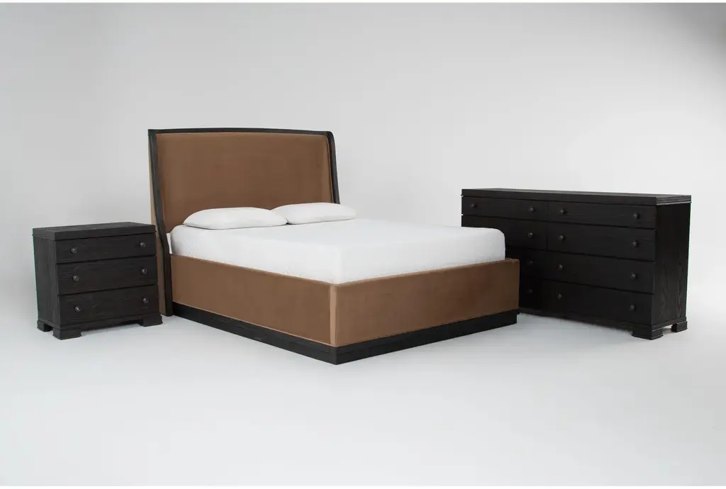 Nomad California King Wood 3 Piece Platform Bedroom Set With Dresser & 2-drawer Nightstand