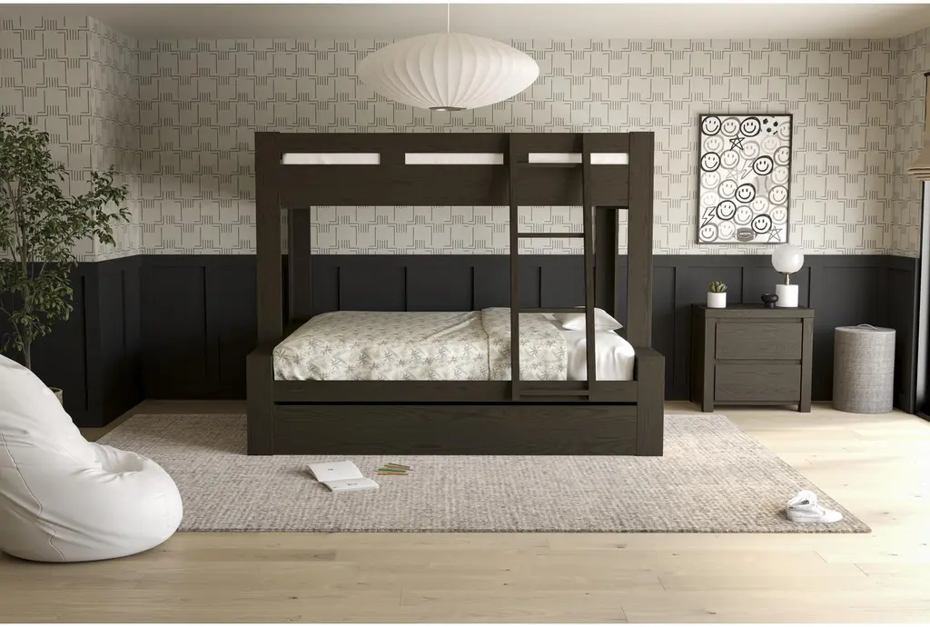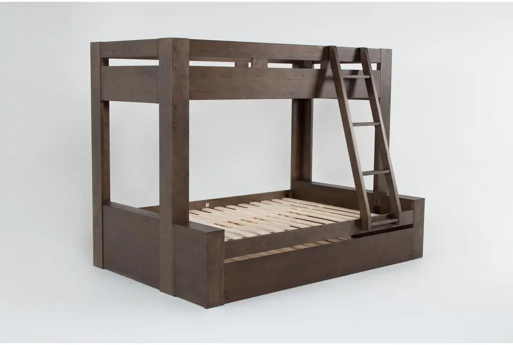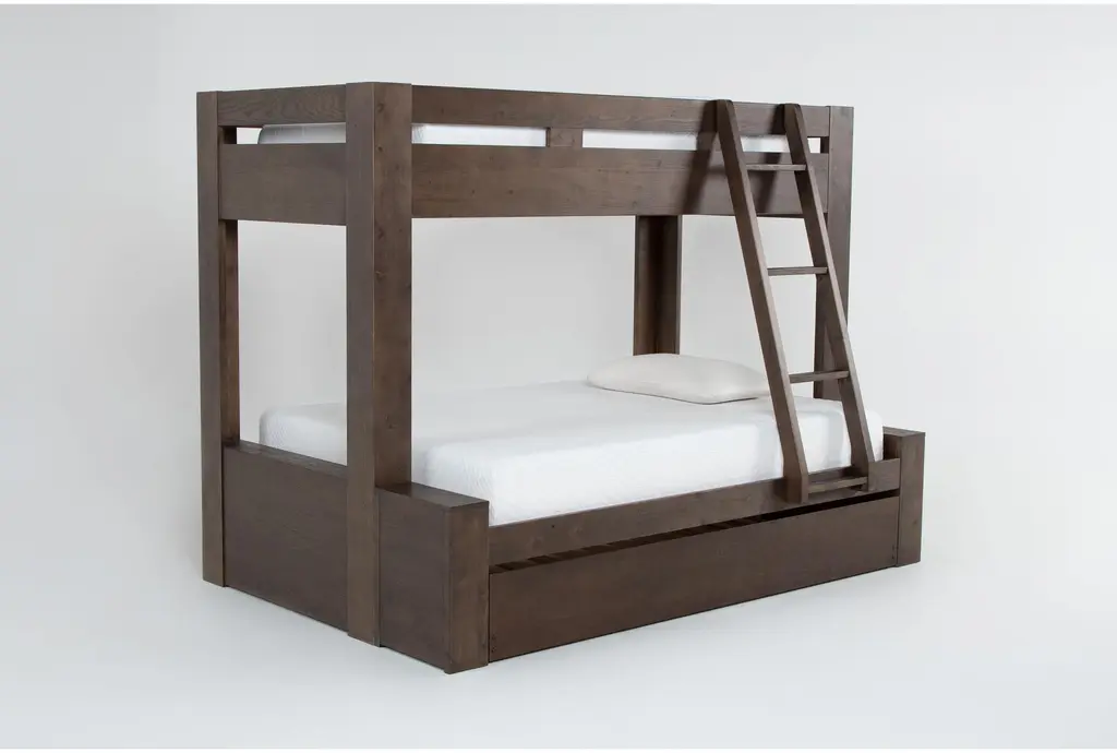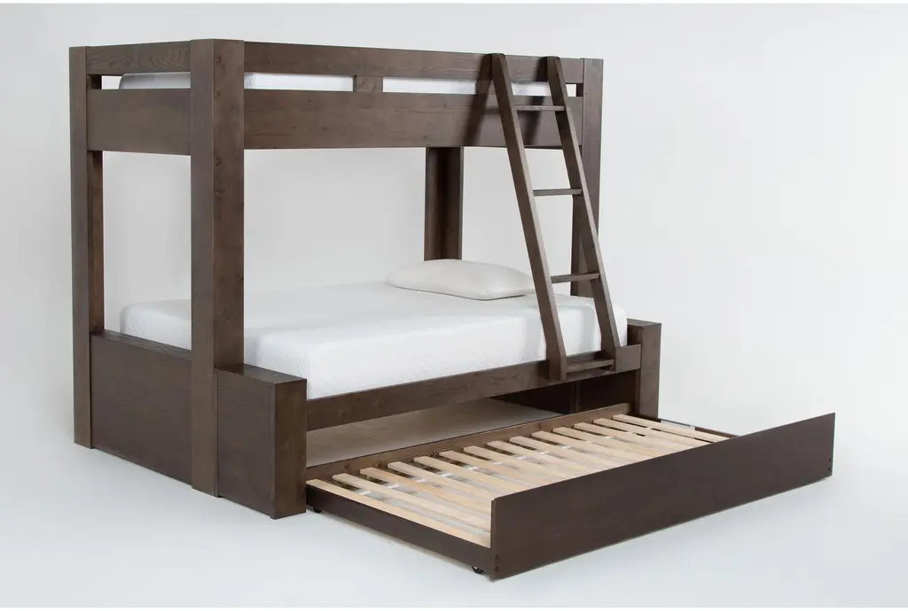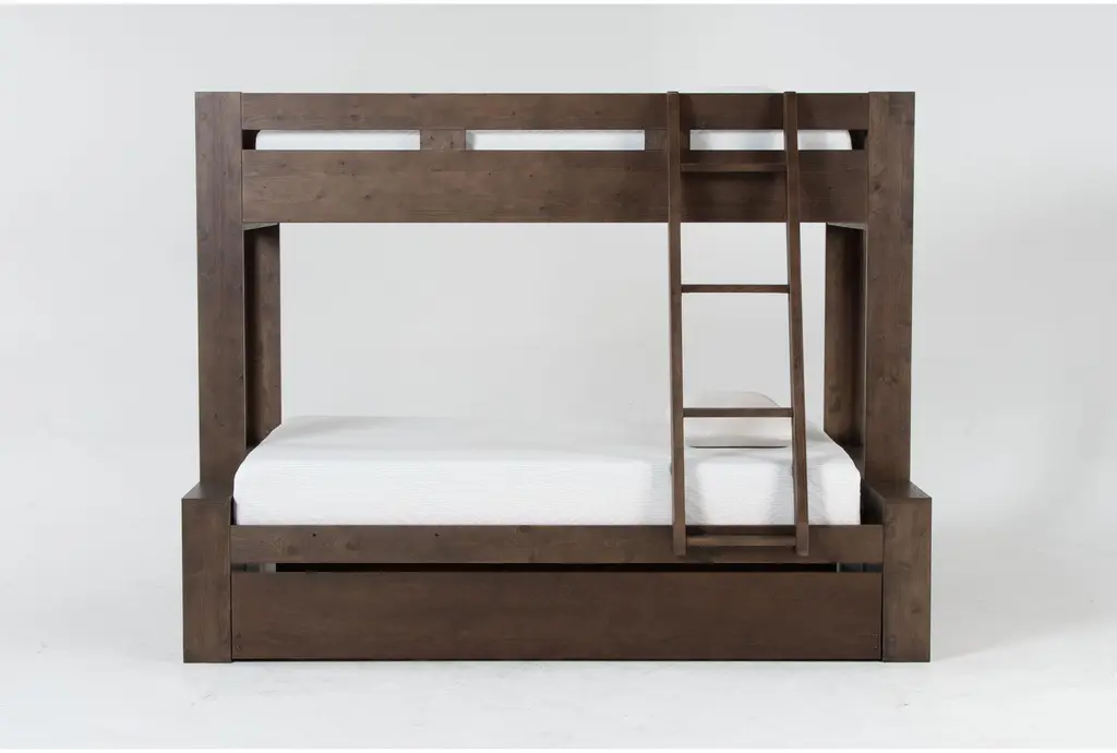 Nora Brown Wood Twin Over Full Bunk Bed With Ladder & Twin Trundle | Drawers | Storage