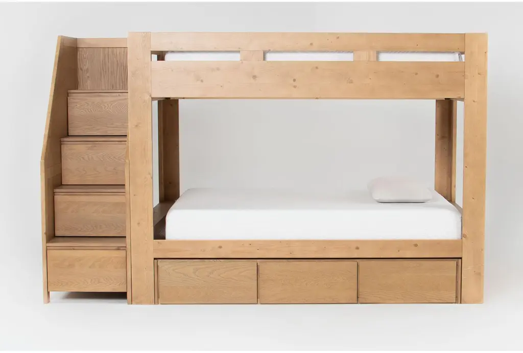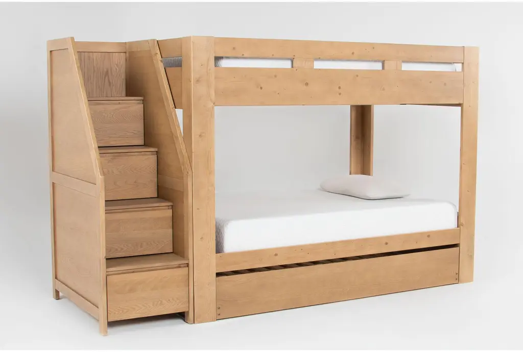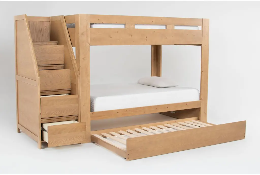 Nora Natural Wood Full Over Full Bunk Bed With Stairway Chest & Twin Trundle