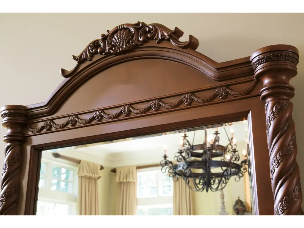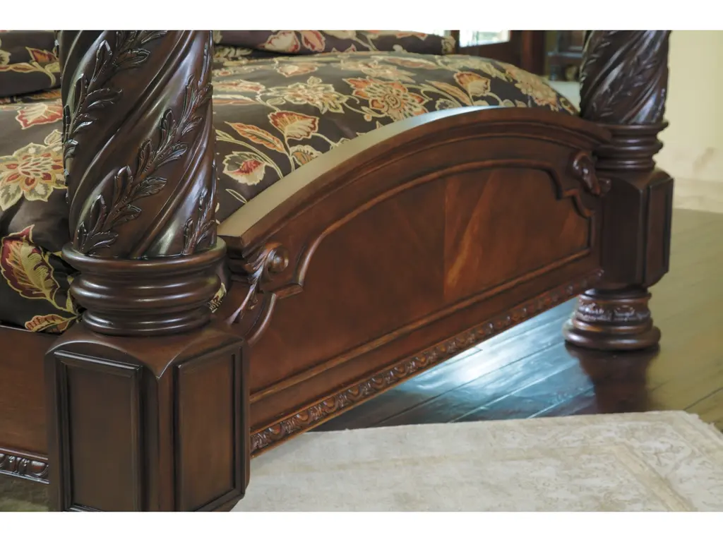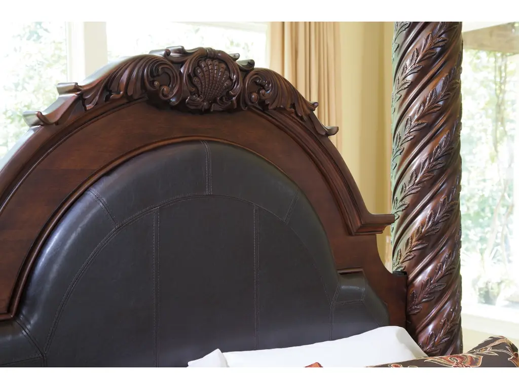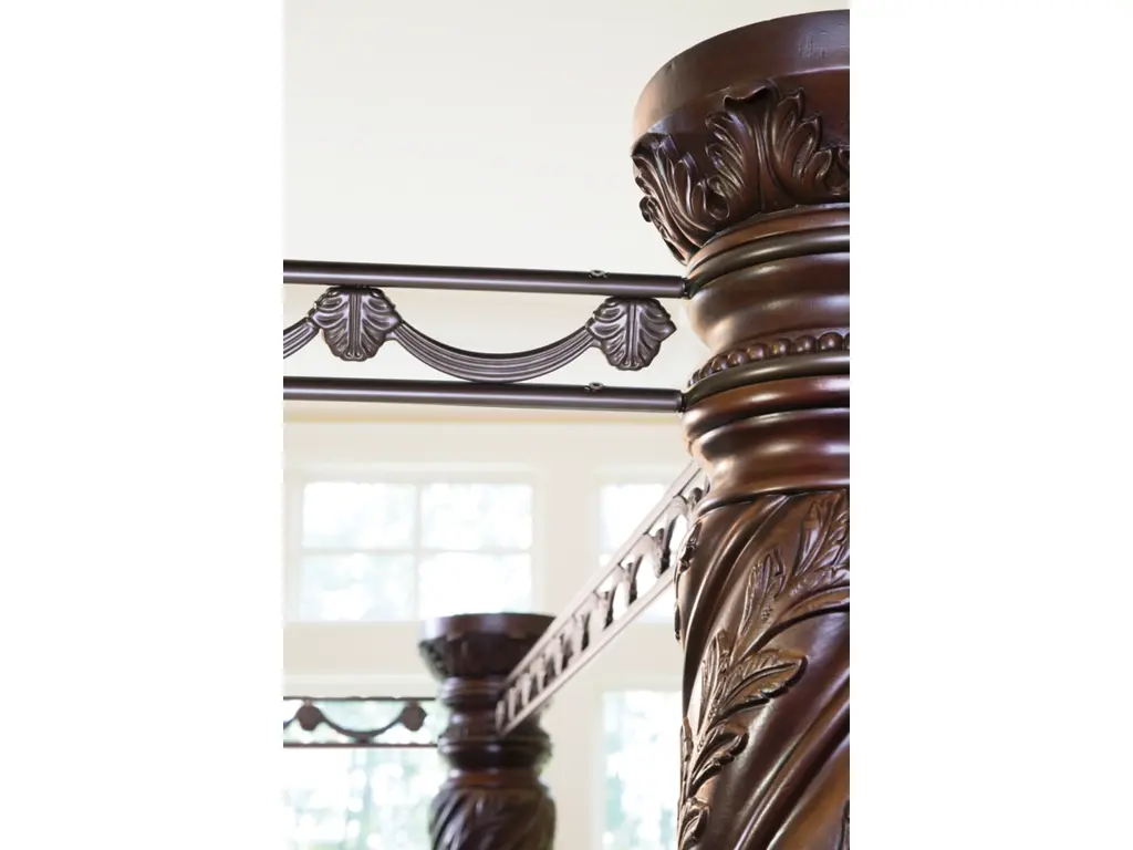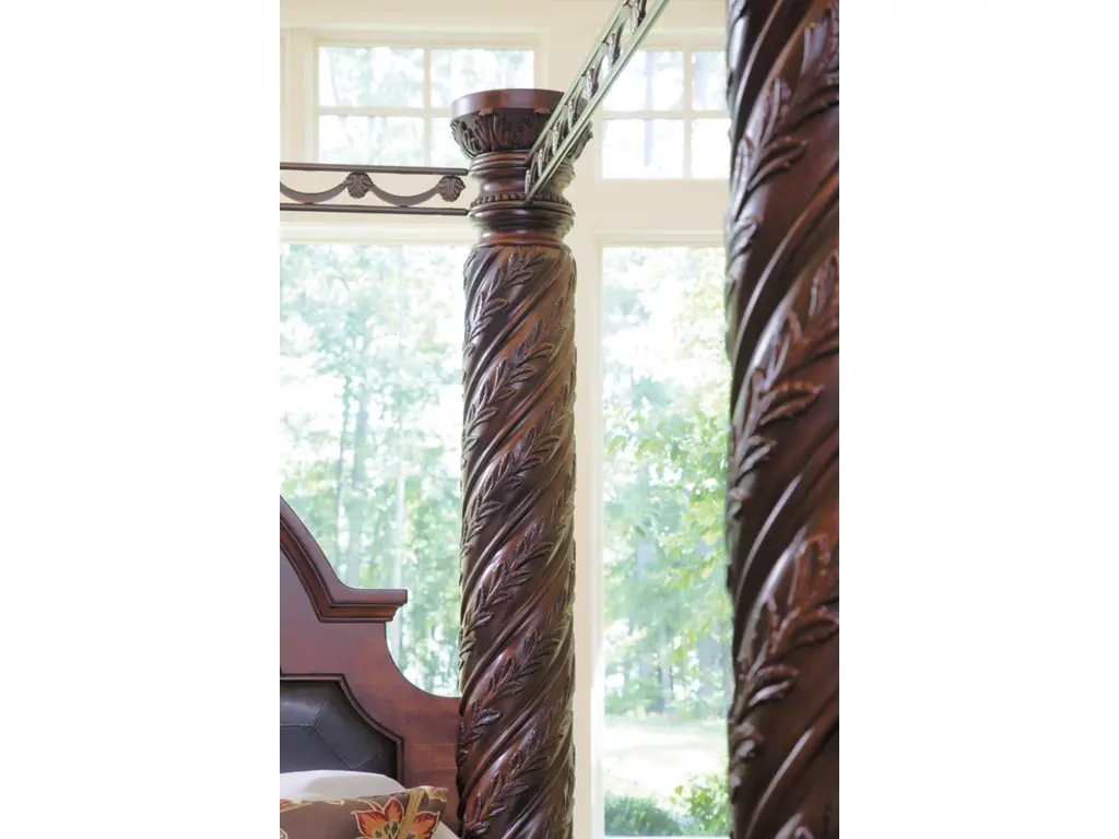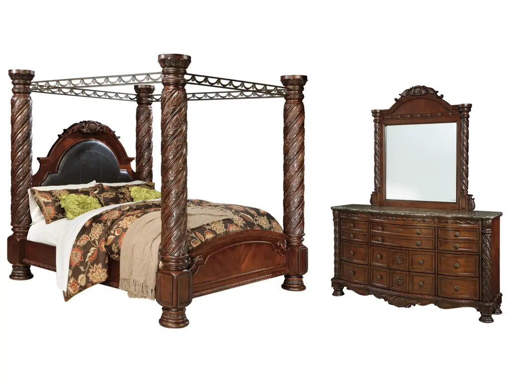 North Shore King Poster Bed With Canopy With Mirrored Dresser