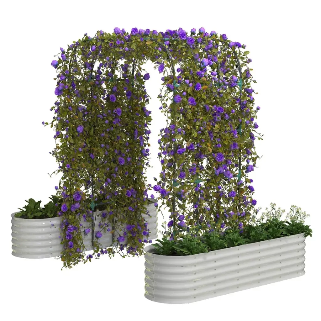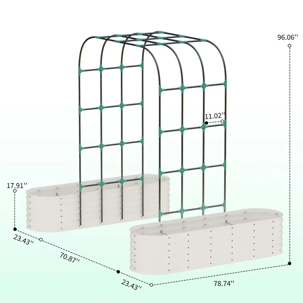 Adjustable Trellis for Versatile Planting:Tailor your garden with the included plant clips and expandable trellis. Our arch metal planter box with trellis supports a variety of plants, from tomatoes to flowering vines, keeping them neatly organized and sun-exposed. The adjustable design adapts to your evolving gardening needs, ensuring maximum yield and visual appeal