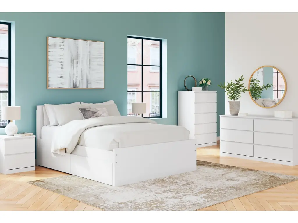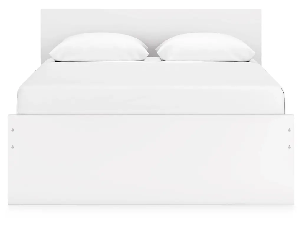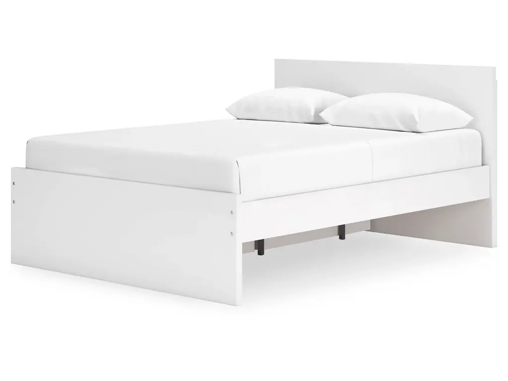 Create the modern bedroom of your dreams. The Onita queen panel platform bed offers a minimal design with maximum style, combining ultra-clean lines and an easy-elegant solid white finish with a hardware-less aesthetic. Spacious storage drawers with ball-bearing glides make putting things away a snap. And this bed doesn't need a box spring or foundation, so you can splurge on a mattress that's sure to carry you away to a soothing place.