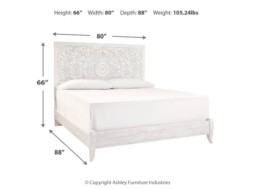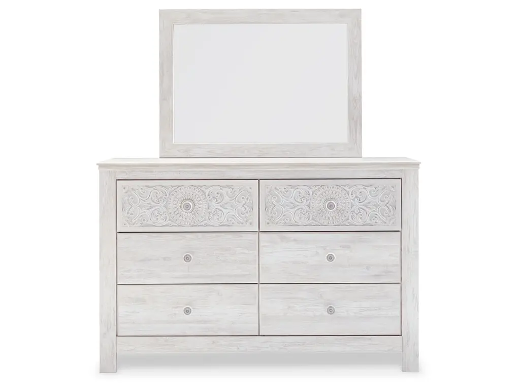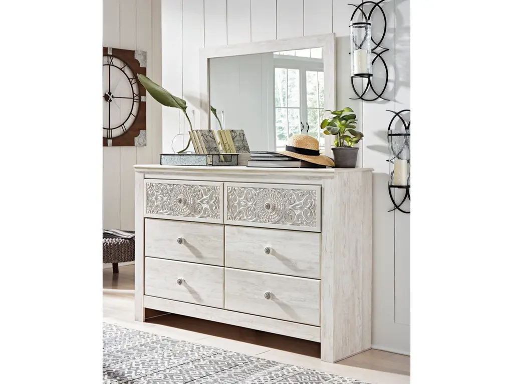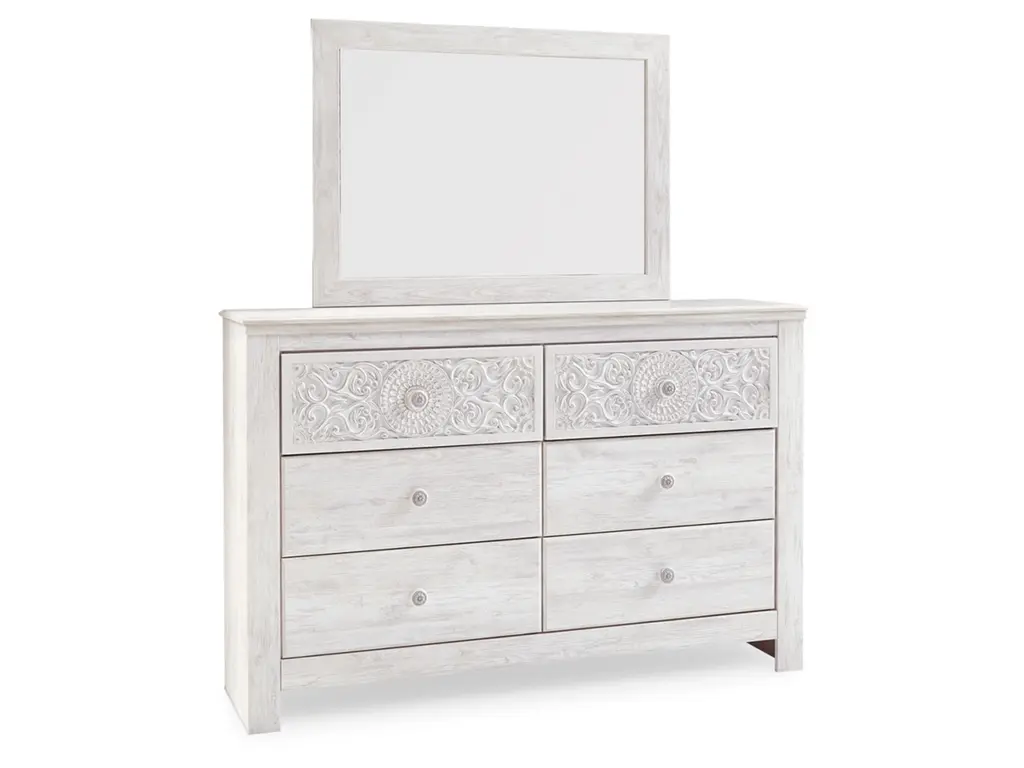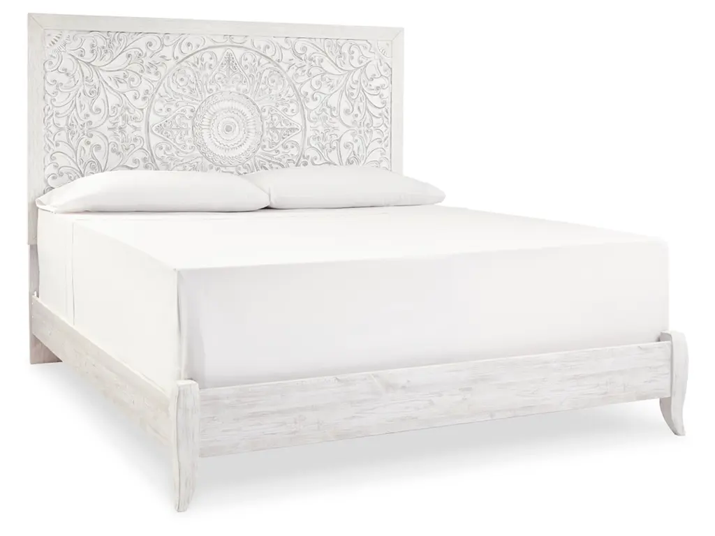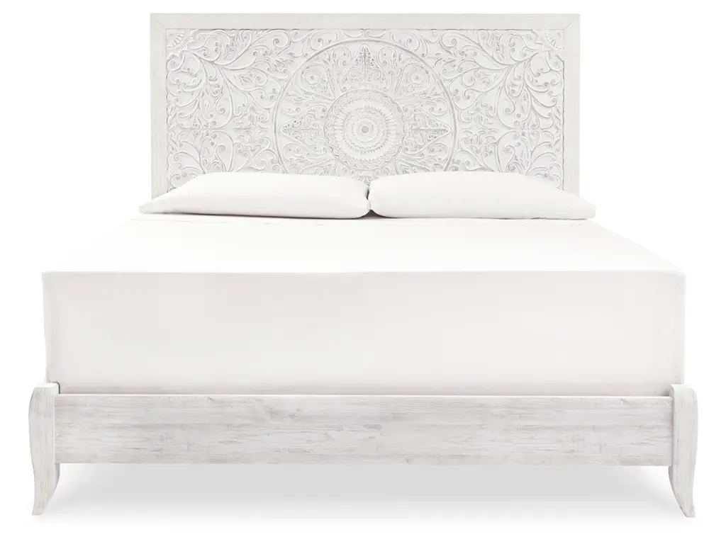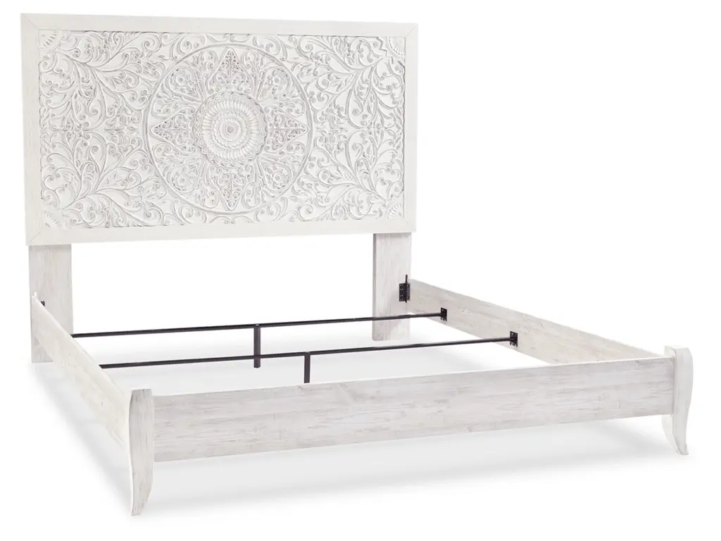 Showcase your trend-setting spirit with the Paxberry bedroom package. Inspired by bohemian tapestries, the featured carved medallion patterns are a testament to boho-chic style. A whitewash finish on the various elements sets the foundation for a room bursting with personality.