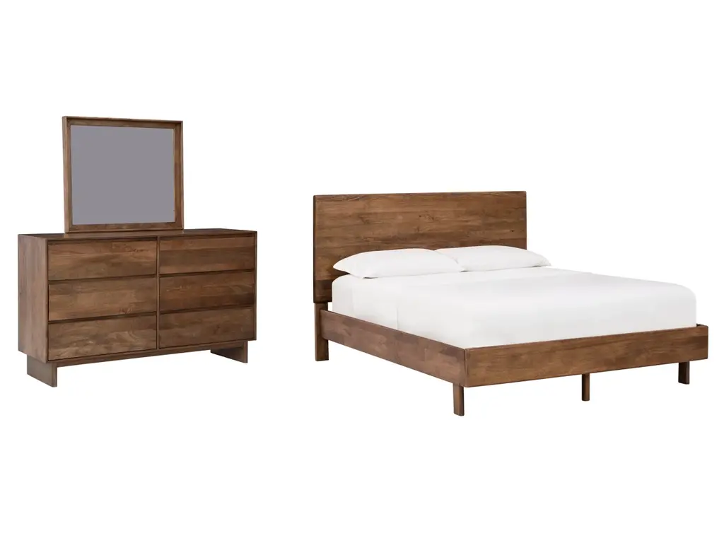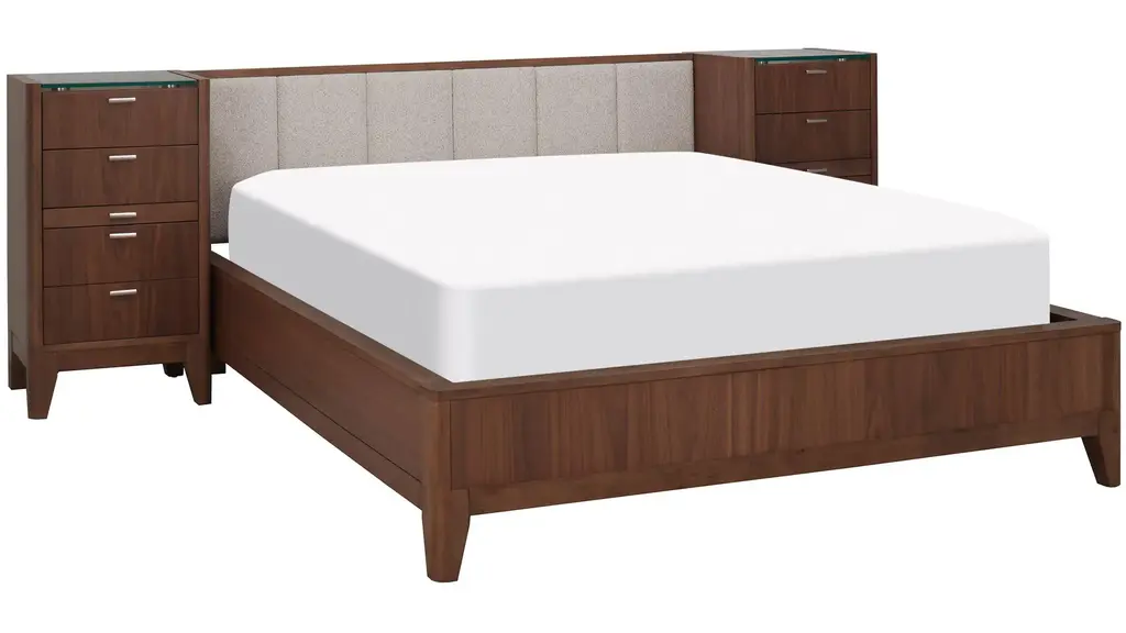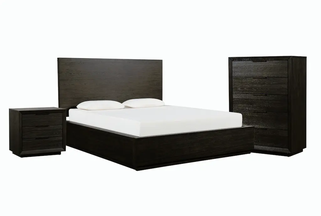 Bring bold minimalism and high function to your personal retreat with our Pierce bed. From clean, strong lines, to a rich, contemporary finish, this design has it all at an unbelievable value. Hardwood and oak veneer instill strength and character, which comes through distinctly in the wood grain, and thanks to a platform-style foundation, you don’t need a box spring.