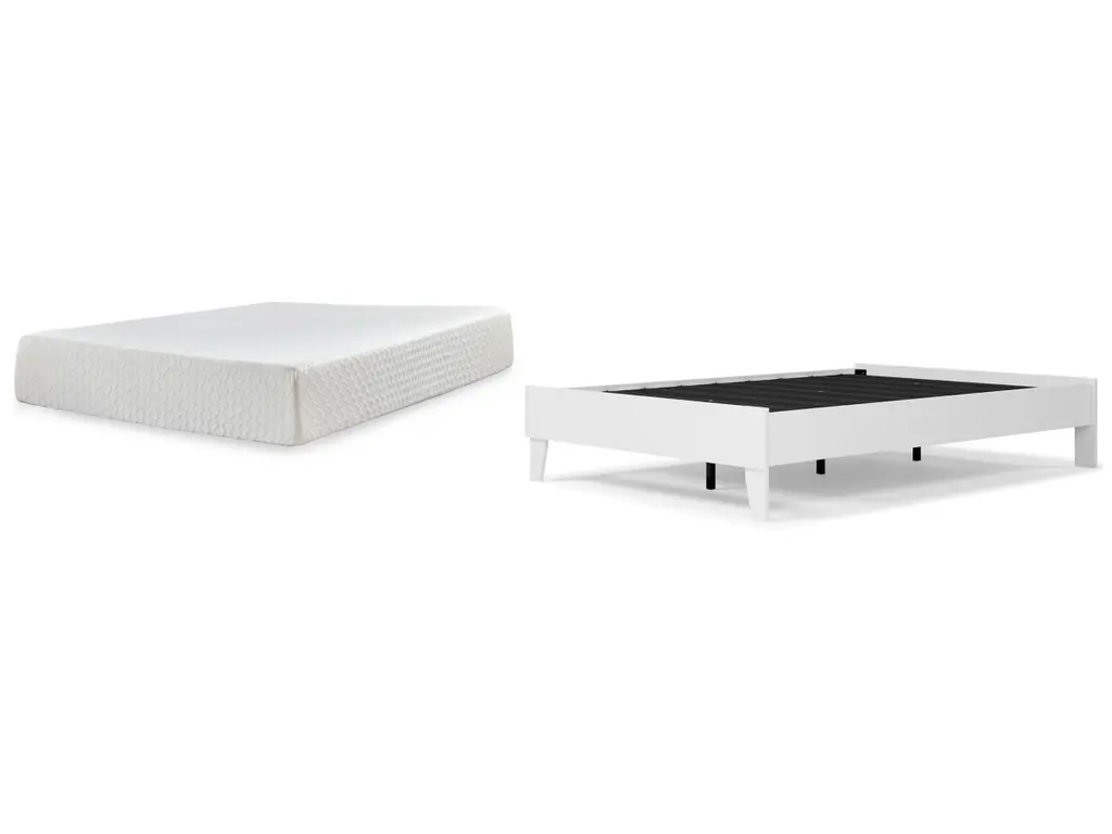 The perfect marriage of contemporary and casual style, the Piperton full platform bed is a charming addition to your home. This bed keeps things simple with a crisp matte white finish. Best of all, it includes a footboard, rails and platform–no additional foundation or box spring needed. When it comes to your comfort, discover the Chime 12-inch full mattress. Its thick layer of memory foam contours to your body, delivering amazing support, pressure relief and comfort. The memory foam layer is supported by a super thick layer of firm support foam. This helps reduce motion transfer so you and your partner can enjoy an undisturbed sleep. This mattress arrives in a box for easy setup.