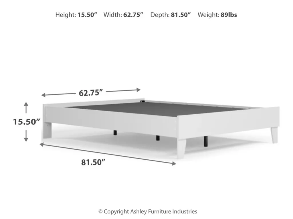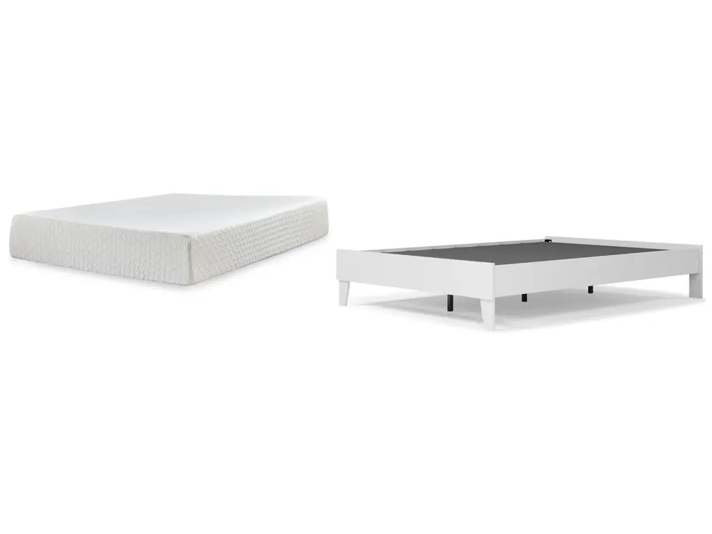 The perfect marriage of contemporary and casual style, the Piperton platform bed is a charming addition to your home. This bed keeps things simple with a crisp matte white finish. Best of all, it includes a footboard, rails and platform–no additional foundation or box spring needed. When it comes to your comfort, discover the Chime 12-inch mattress. Its thick layer of memory foam contours to your body, delivering amazing support, pressure relief and comfort. The memory foam layer is supported by a super thick layer of firm support foam. This helps reduce motion transfer so you and your partner can enjoy an undisturbed sleep. This mattress arrives in a box for easy setup.