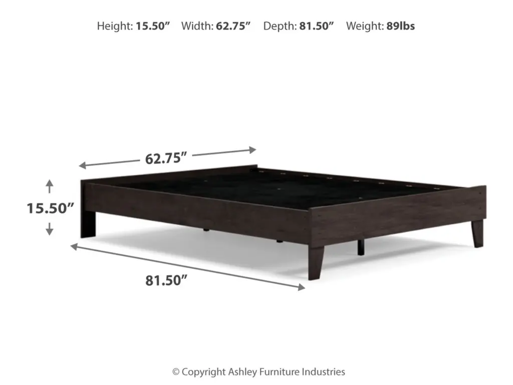 The perfect marriage of contemporary and casual style, the Piperton queen bed and mattress package is a charming addition to your home. The bed keeps things simple with its dark charcoal finish over replicated oak grain. Best of all, this bed includes a footboard, rails and platform, so no additional foundation or box spring is needed. When it comes to your comfort, discover the 8-inch queen mattress. Its memory foam contours to your body, delivering amazing support, pressure relief and comfort. The memory foam layer is supported by a thick layer of firm support foam. This helps reduce motion transfer so you and your partner can enjoy an undisturbed sleep. This mattress arrives in a box for easy setup.
