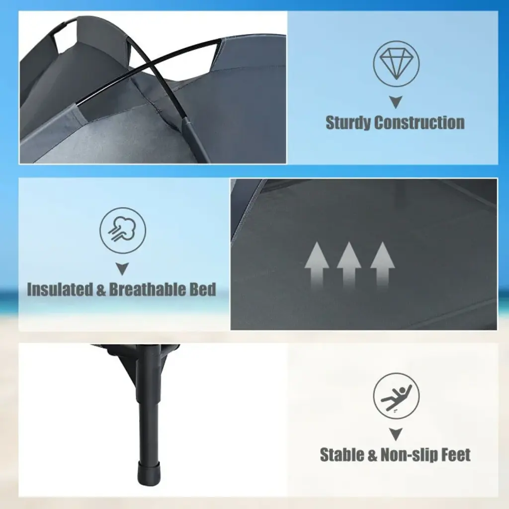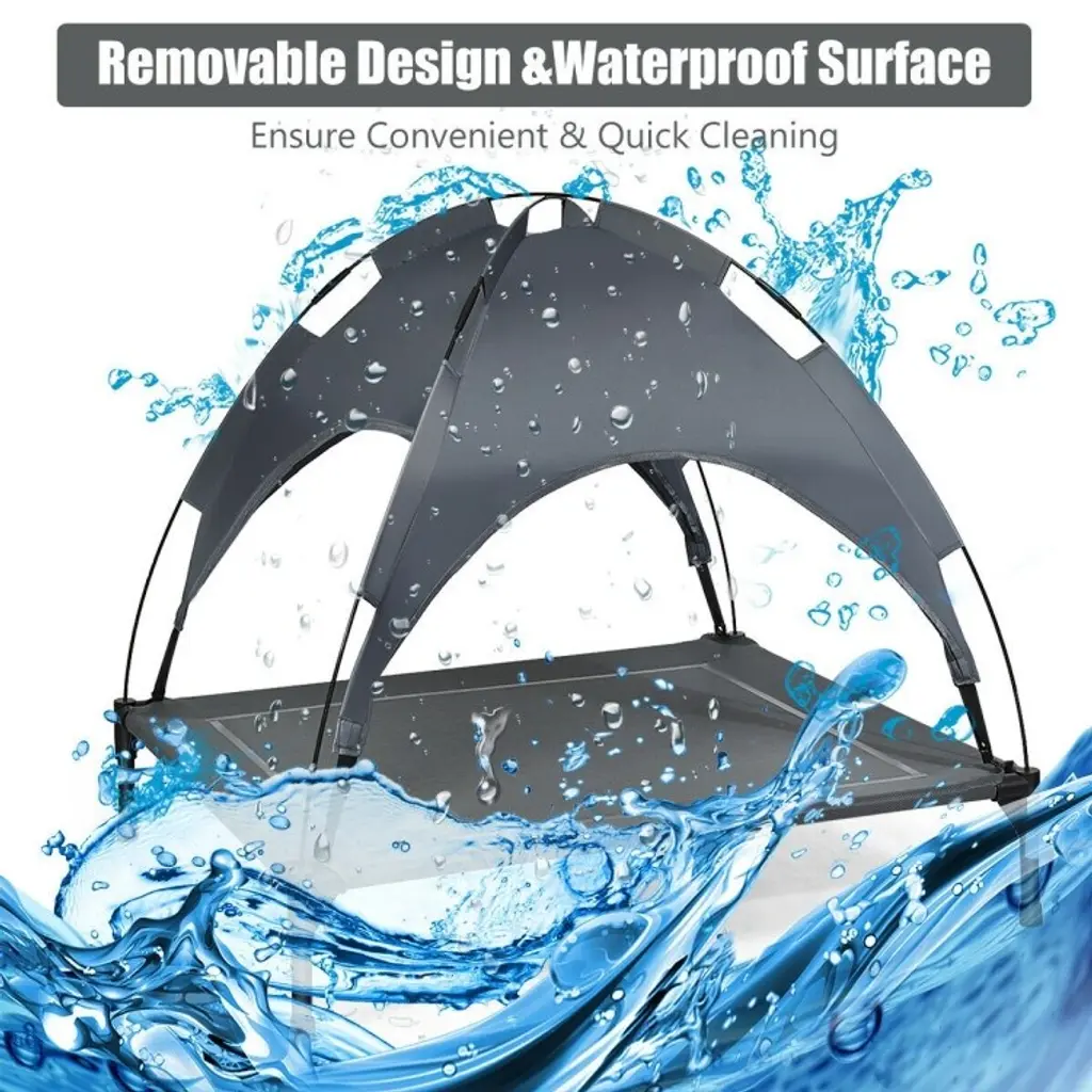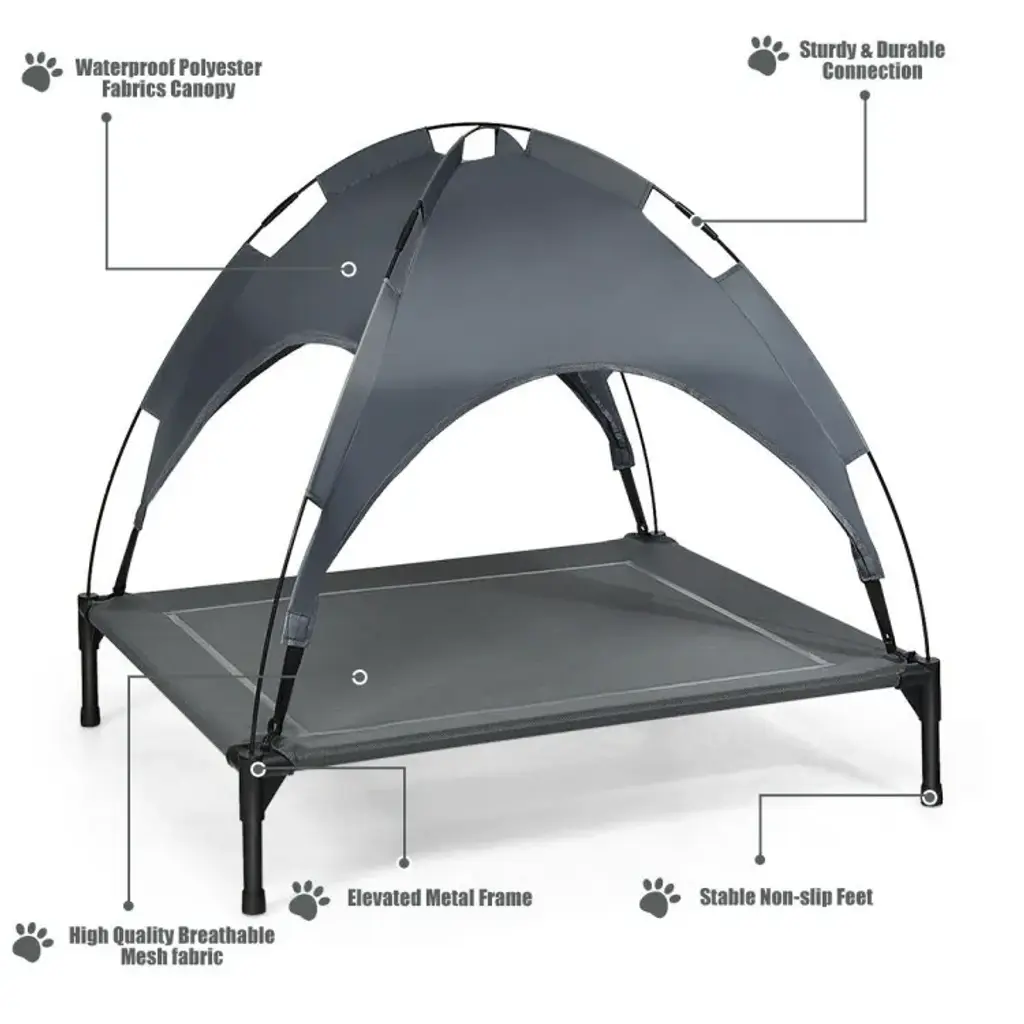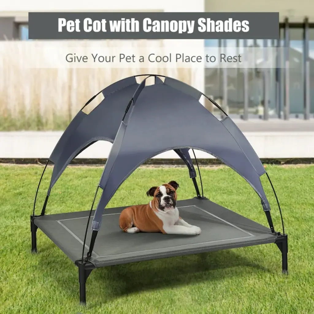 Portable Elevated Outdoor Pet Bed With Removable Canopy Shade - 35.5" X 32" X 34" (L X W X H) - Grey