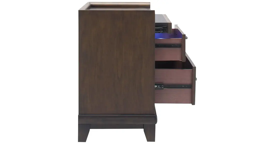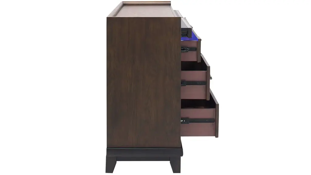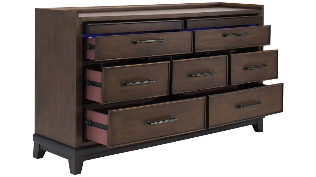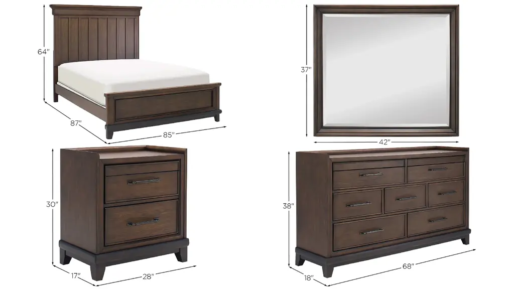 Mission style elements and abundant architectural details give the Prospect Park 4-pc. Bedroom Set a stately charm that's bound to make it an heirloom of tomorrow. Carefully crafted with raised molding, antiqued hardware, and a rich oak, cathedral grain finish, the Prospect Park king bedroom set is appointed with LED lighting inside the dresser and nightstand drawers, and a commanding tall headboard on the platform bed.