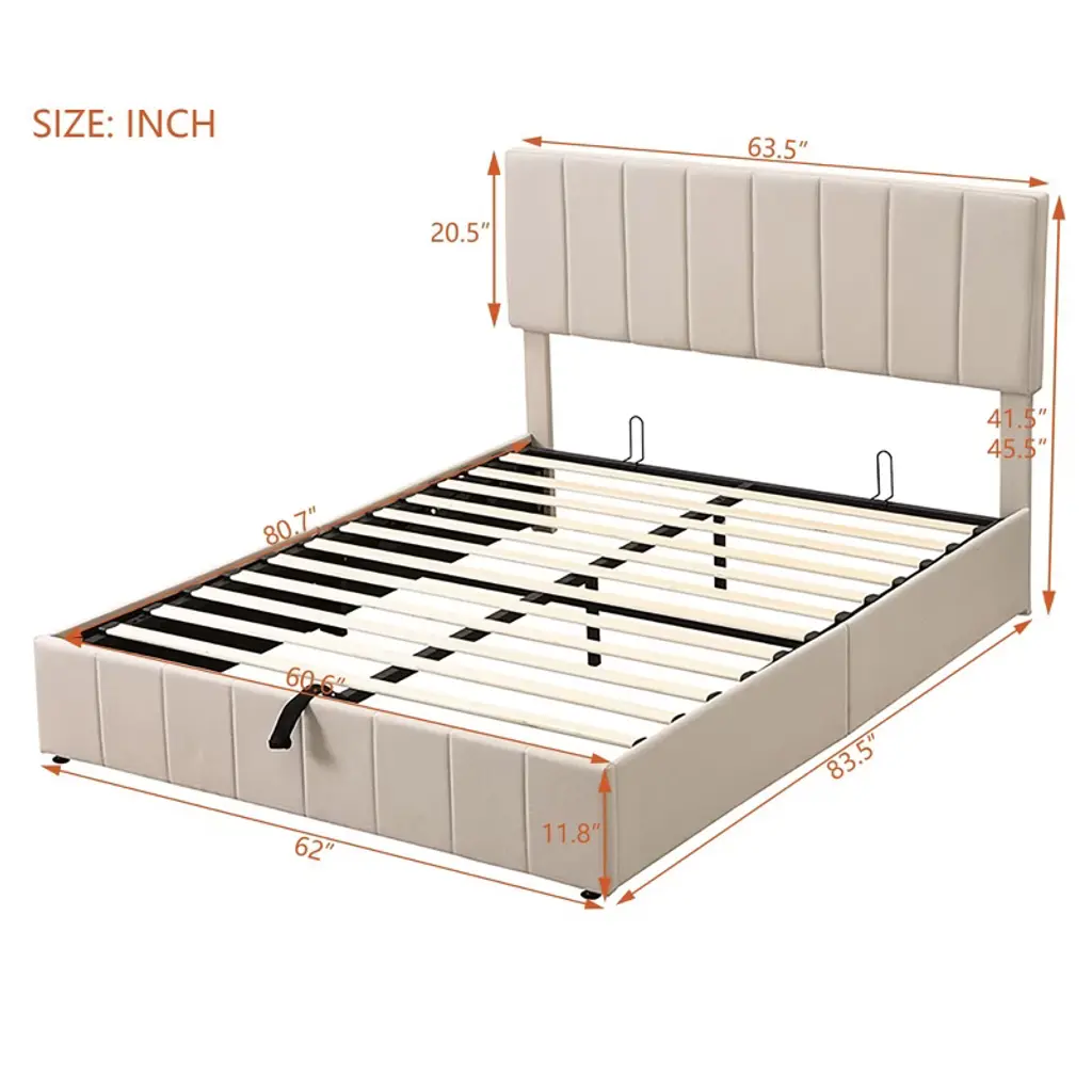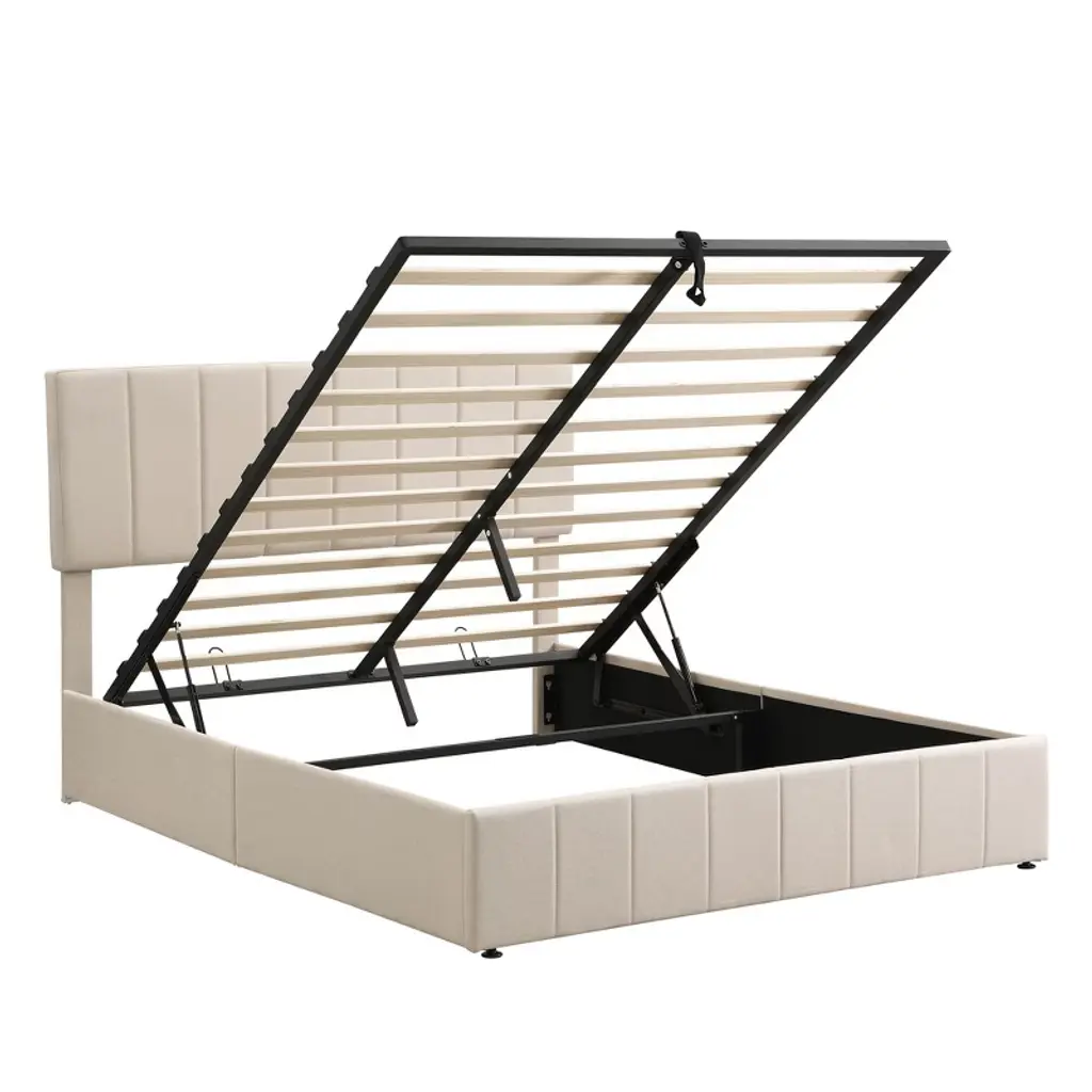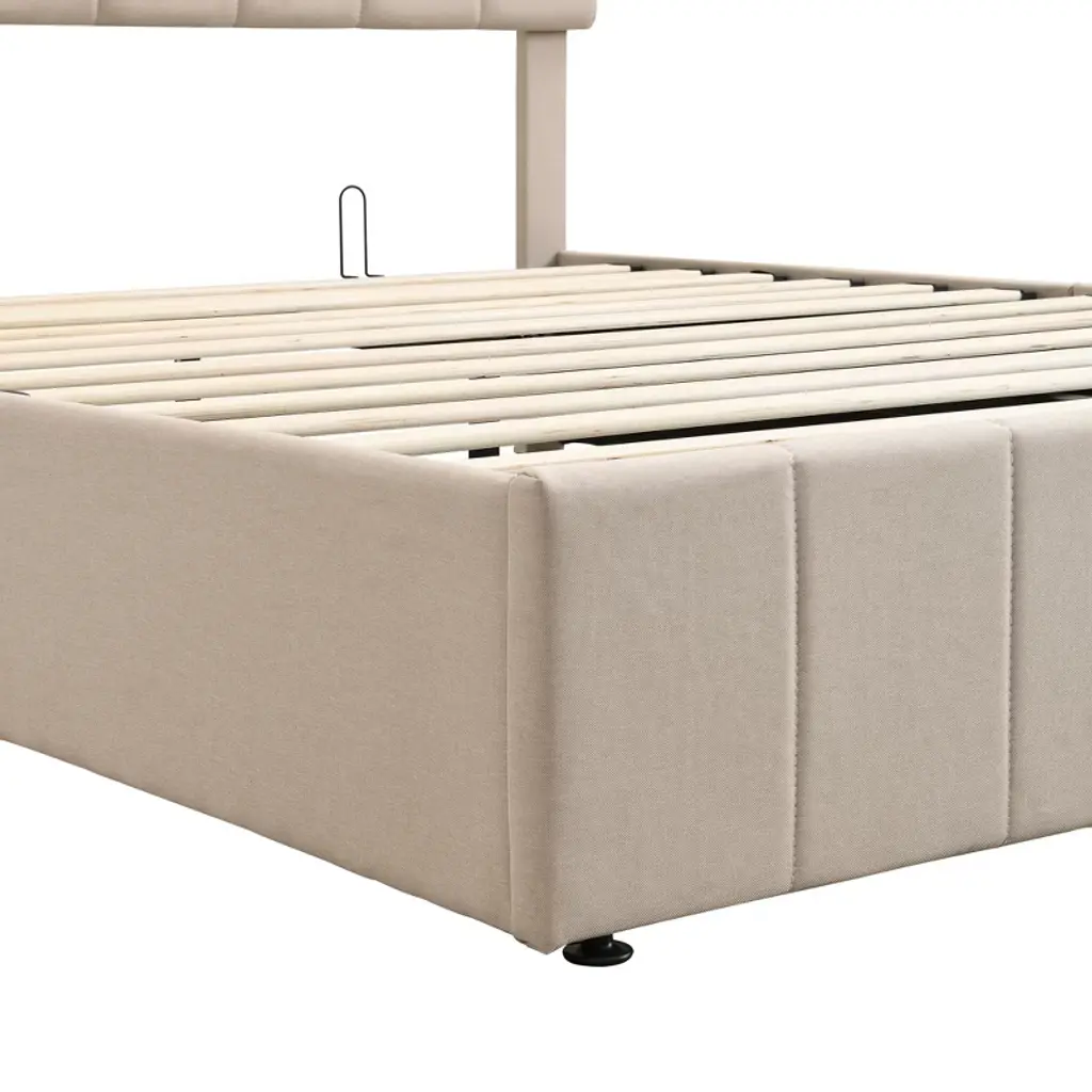 Queen Size Upholstered Platform Bed With A Hydraulic Storage System - Beige