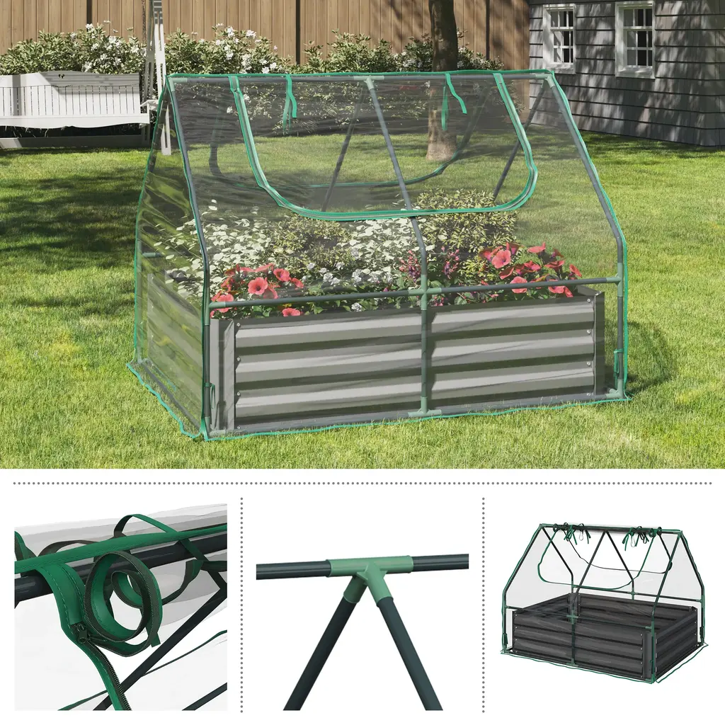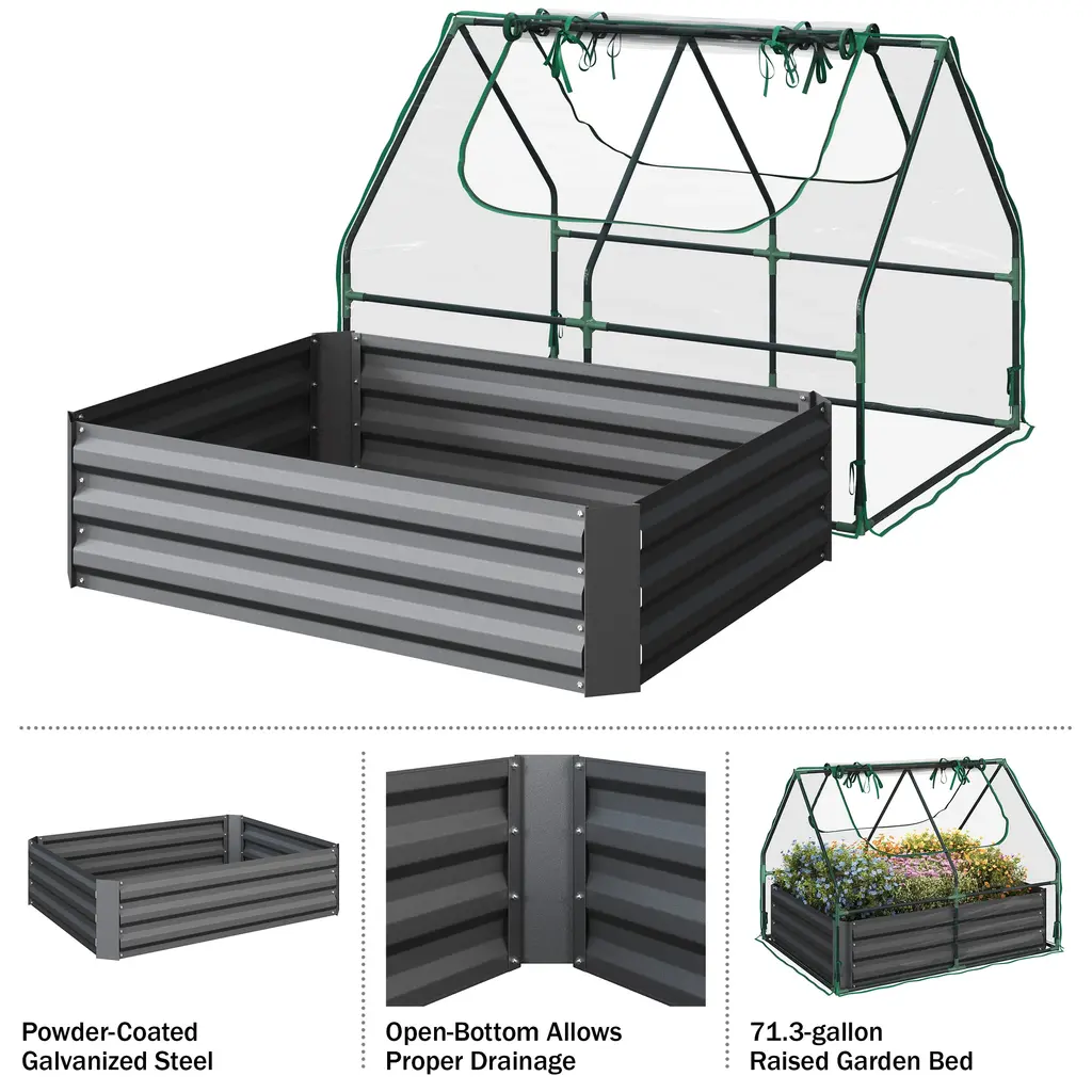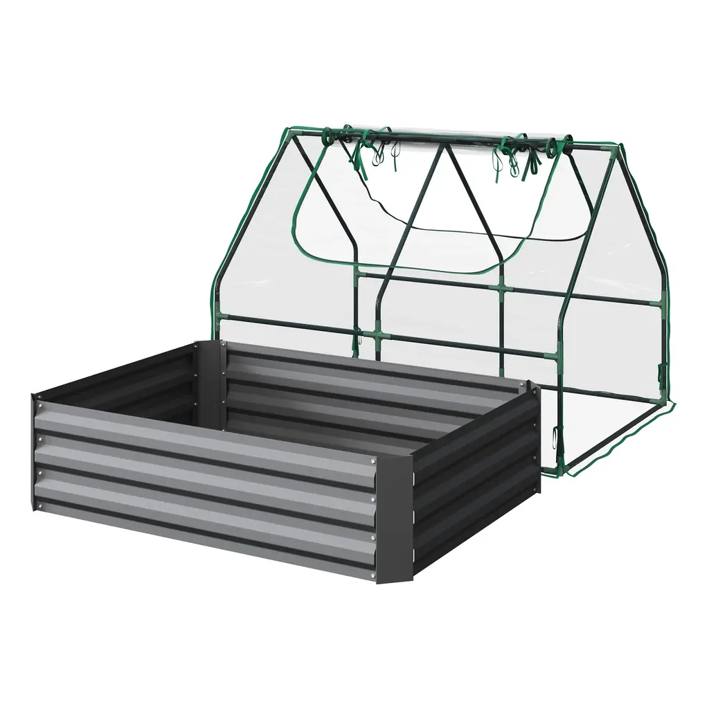 Create an ideal environment for plants with the Galvanized Planter Bed and Plant Tent Combination by Home-Complete. This set includes an easy-to-assemble 71.3-gallon raised garden bed and a removable drop over greenhouse that lets sunlight through while retaining heat and moisture, so plants can stay warm and keep growing in spring and winter. The two zippered windows give plants access to fresh air and make watering easy. Enjoy a thriving garden outside the standard growing season with this 2-in-1 gardening set. IMPORTANT: Home-Complete is committed to providing the consumer with the absolute best price and value on all of our products. NOTE: This is an exclusive product of Home-Complete and ONLY Raised Garden Beds Outdoor for Vegetables by Home-Complete are GUARANTEED to be genuine. Avoid buying counterfeit products and transacting with unauthorized sellers. Home-Complete is a registered trademark protected by U.S. Trademark law and will be vigorously defended. GALVANIZED RAISED GARDEN BED - Grow the garden of your dreams with this 71.3-gallon galvanized planter and detachable outdoor greenhouse. Create ideal conditions for vegetables, flowers, and herbs with this 2-in-1 set. DROP OVER GREENHOUSE INCLUDED - This raised planter box includes a 4-foot-long by 3-foot-wide removable mini greenhouse with 2 zippered window vents for easy access to care for plants, so you can protect delicate seedlings and expand your growing season. PLANT-FRIENDLY DESIGN - The open-bottom garden bed allows proper drainage, while the waterproof greenhouse plant cover attachment allows nourishing sunlight through, retaining heat and moisture to create an environment where plants can thrive. DURABLE CONSTRUCTION - This garden box is constructed from rust-resistant, powder-coated galvanized steel and is easy to assemble with the included plastic connectors. The small greenhouse attachment is made of durable PVC, for season after season of use. PRODUCT DETAILS - Materials: Galvanized Metal and PVC. Dimensions: Metal Base - (L) 4’ x (W) 3’ x (H) 1’; Greenhouse Cover - (L) 4’ x (W) 3’ x (H) 3’; Metal Base Side Thickness: 0.5mm; Metal Base Corner Thickness: 1mm. Planter Bed Capacity: 71.3-Gallons.