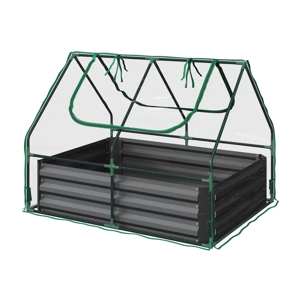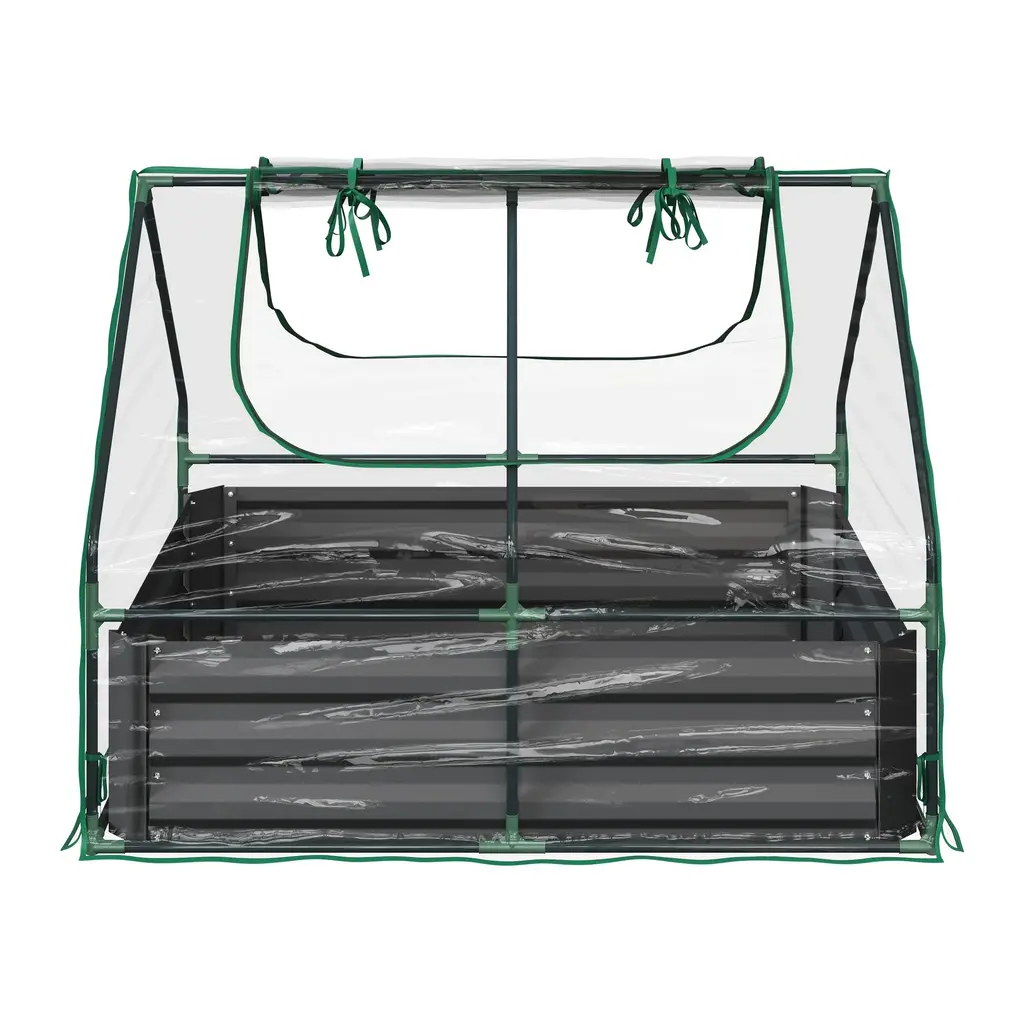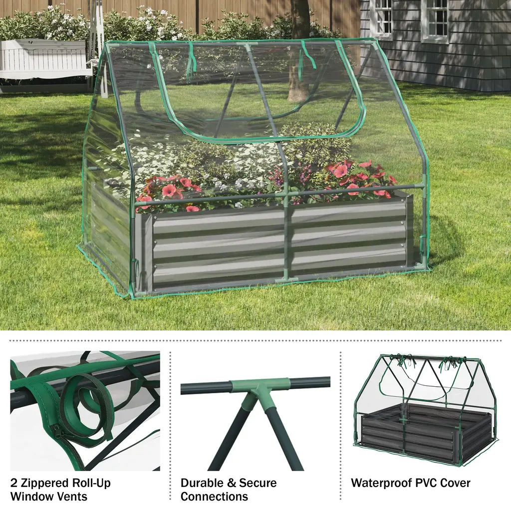 Create an ideal environment for plants with the Galvanized Planter Bed and Plant Tent Combination by Home-Complete. This set includes an easy-to-assemble 71.3-gallon raised garden bed and a removable drop over greenhouse that lets sunlight through while retaining heat and moisture, so plants can stay warm and keep growing in spring and winter. The two zippered windows give plants access to fresh air and make watering easy. Enjoy a thriving garden outside the standard growing season with this 2-in-1 gardening set. IMPORTANT: Home-Complete is committed to providing the consumer with the absolute best price and value on all of our products. NOTE: This is an exclusive product of Home-Complete and ONLY Raised Garden Beds Outdoor for Vegetables by Home-Complete are GUARANTEED to be genuine. Avoid buying counterfeit products and transacting with unauthorized sellers. Home-Complete is a registered trademark protected by U.S. Trademark law and will be vigorously defended. GALVANIZED RAISED GARDEN BED - Grow the garden of your dreams with this 71.3-gallon galvanized planter and detachable outdoor greenhouse. Create ideal conditions for vegetables, flowers, and herbs with this 2-in-1 set. DROP OVER GREENHOUSE INCLUDED - This raised planter box includes a 4-foot-long by 3-foot-wide removable mini greenhouse with 2 zippered window vents for easy access to care for plants, so you can protect delicate seedlings and expand your growing season. PLANT-FRIENDLY DESIGN - The open-bottom garden bed allows proper drainage, while the waterproof greenhouse plant cover attachment allows nourishing sunlight through, retaining heat and moisture to create an environment where plants can thrive. DURABLE CONSTRUCTION - This garden box is constructed from rust-resistant, powder-coated galvanized steel and is easy to assemble with the included plastic connectors. The small greenhouse attachment is made of durable PVC, for season after season of use. PRODUCT DETAILS - Materials: Galvanized Metal and PVC. Dimensions: Metal Base - (L) 4’ x (W) 3’ x (H) 1’; Greenhouse Cover - (L) 4’ x (W) 3’ x (H) 3’; Metal Base Side Thickness: 0.5mm; Metal Base Corner Thickness: 1mm. Planter Bed Capacity: 71.3-Gallons.