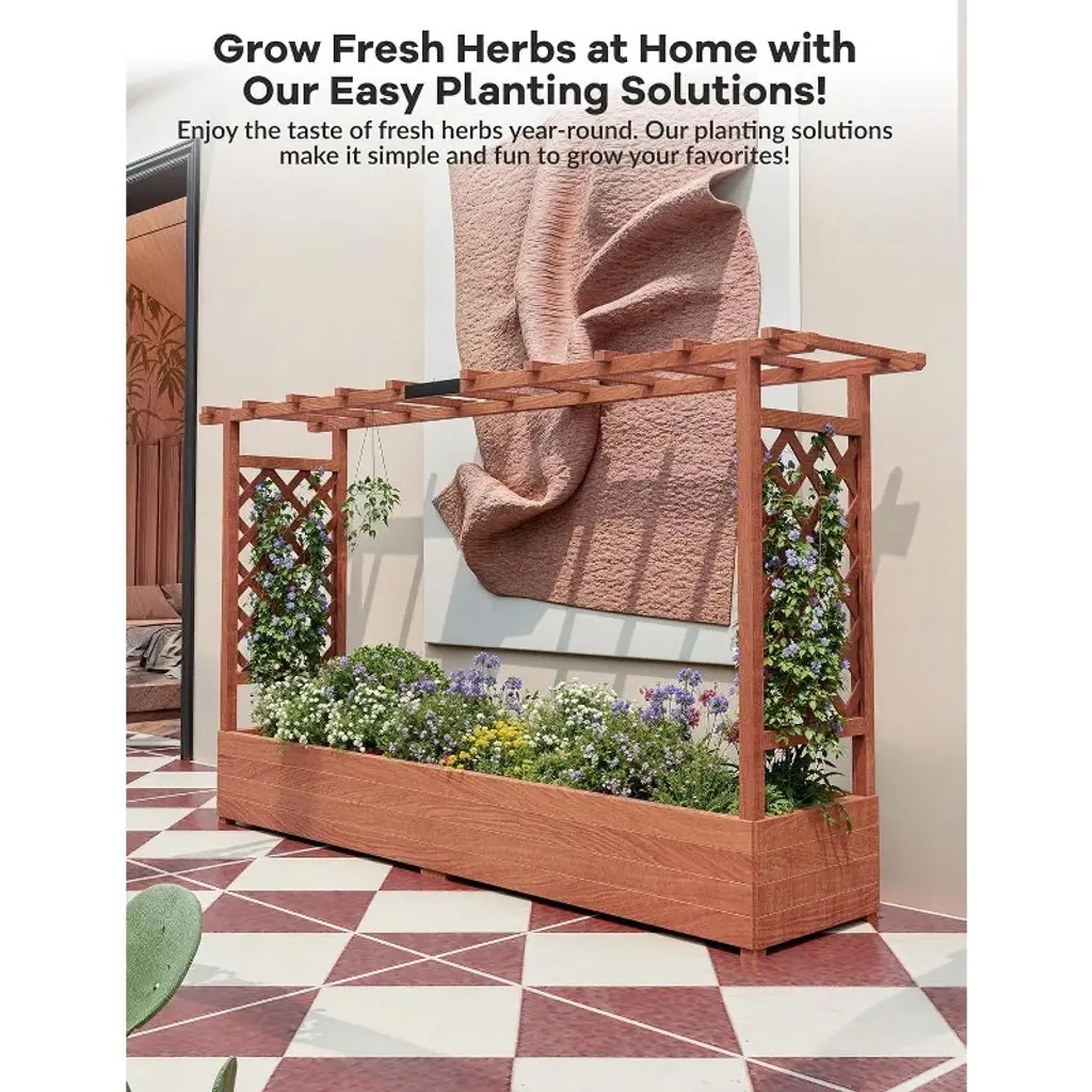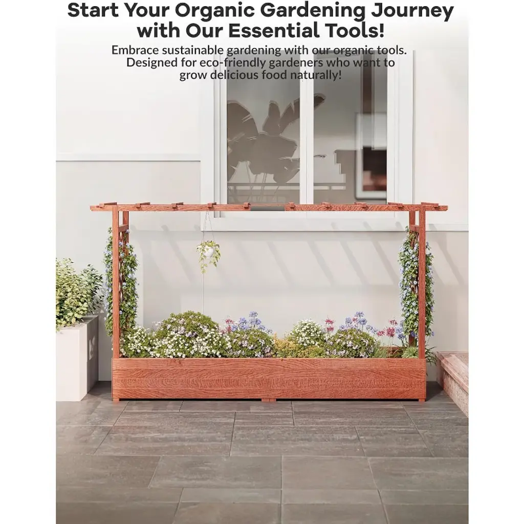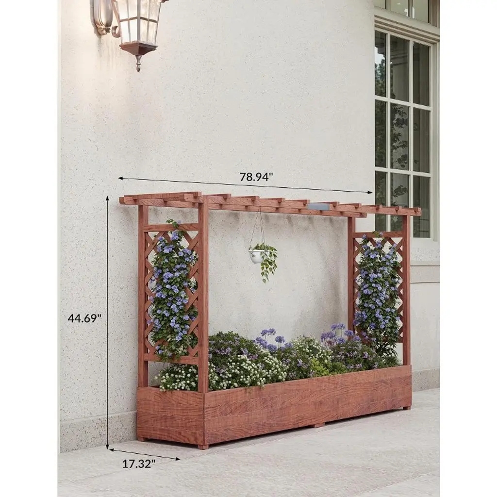 Raised Garden Bed With Trellis, Hanging Roof, And 4 Drainage Holes, Freestanding Elevated Garden Bed For Climbing Plants, Vines, Flowers, 78x17x44ft