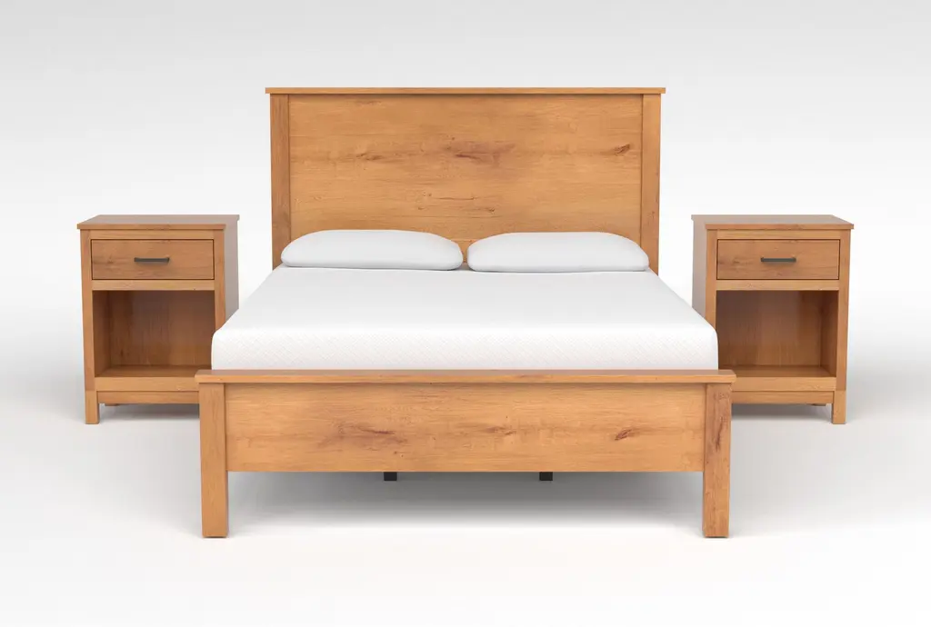 Reagan Toffee II Queen Wood 3 Piece Bedroom Set With 2 1-Drawer Nighstand
