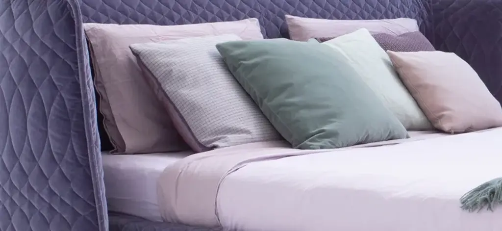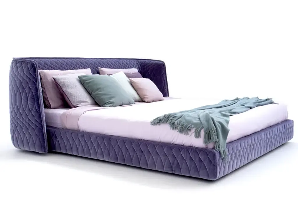 Redondo is inspired by 1950s and 60s American cars- their upholstered interiors, the soft curves of their bodywork, and on-the-road comfort for long coast-to-coast drives. To the observer, it is the stage for scenes for everyday life.Wooden structure covered with polyurethane foam in varied densities. Slatted base supports adjustable in height, feet are 70 mm high black polypropylene. Accomodates standard European mattresses only. Fabric covers are quilted in a specific pattern designed by Patricia Urquiola and is an integral esthetic of this collection. Redondo beds collection covers are removable.