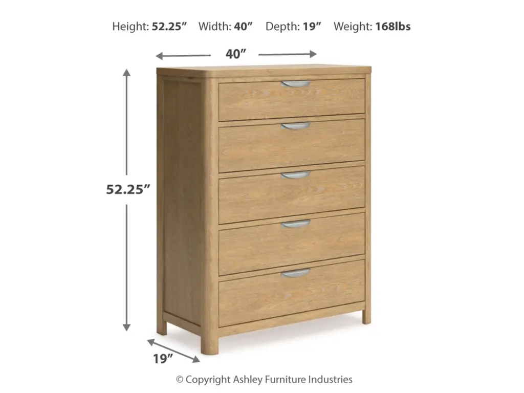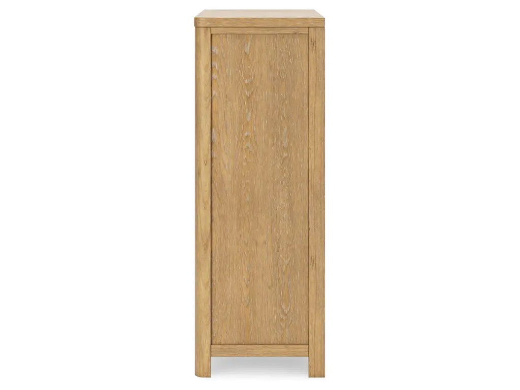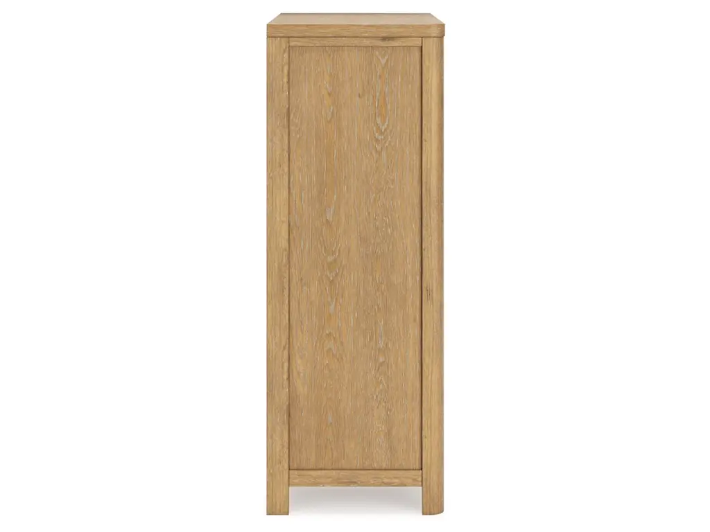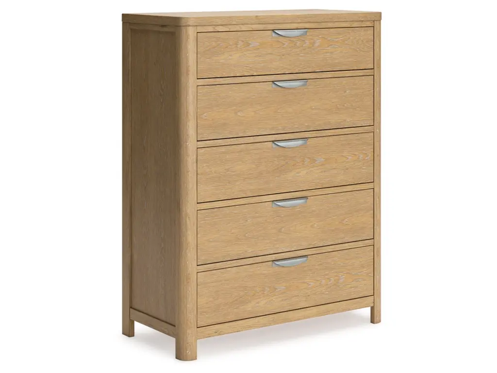 The Rencott bedroom package's classic yet contemporary good looks are hard to deny. Softly shaped posts with a light oak finish and wire-brushed wood grain texture lend an organic appeal to your soothing space.