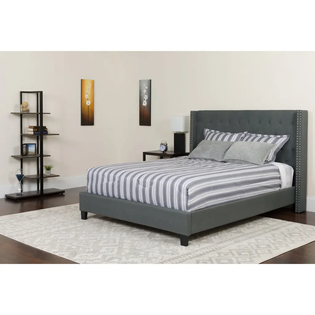 Riverdale Tufted Upholstered Platform Bed With Accent Nail Trimmed Extended Sides With Memory Foam Pocket Spring Mattress