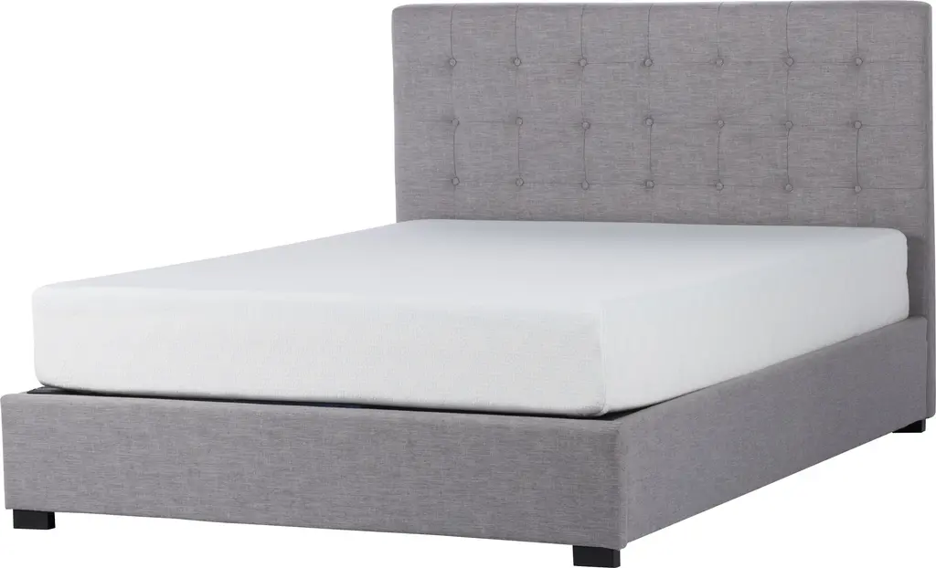 Stop looking, this luxurious platform bed will keep you in awe every time you walk into your bedroom. This complete set includes your bed frame and hybrid pocket spring and memory foam mattress in a box. This beauty is adorned by nailhead trimming on the protruding sides and has a button tufted panel headboard. The headboard has ample height to prop yourself up against it while the low set frame still provides an open appeal that you seek out when looking at platform beds. The mattress sits atop wooden support slats. The 12" memory foam and pocket spring mattress provides superior motion isolation and supports the contours of your body. The hybrid mattress consists of pocket spring coils and two layers of memory foam padding that provide a barrier between the springs for easy resting. The foam is CertiPUR-US Certified so it's free from heavy metals, phthalates, BPDE, formaldehyde and has reduced VOCs so you can rest easy knowing your indoor air quality won't be compromised.The foam is CertiPUR-US Certified so it's free from heavy metals, phthalates, BPDE, formaldehyde and has reduced VOCs so you can rest easy knowing your indoor air quality won't be compromised.The mattress instantly starts expanding once you cut the plastic and will return to its original shape in 48 to 72 hours. When considering your next bed purchase, this tall platform bed should be at the top of your list.