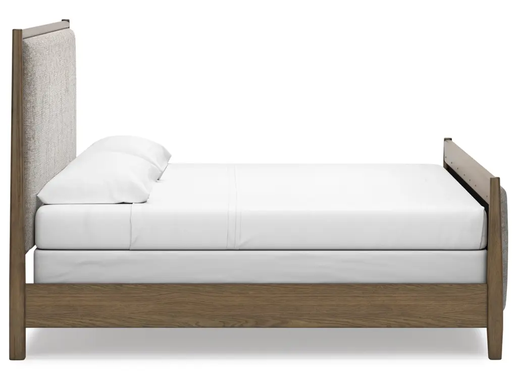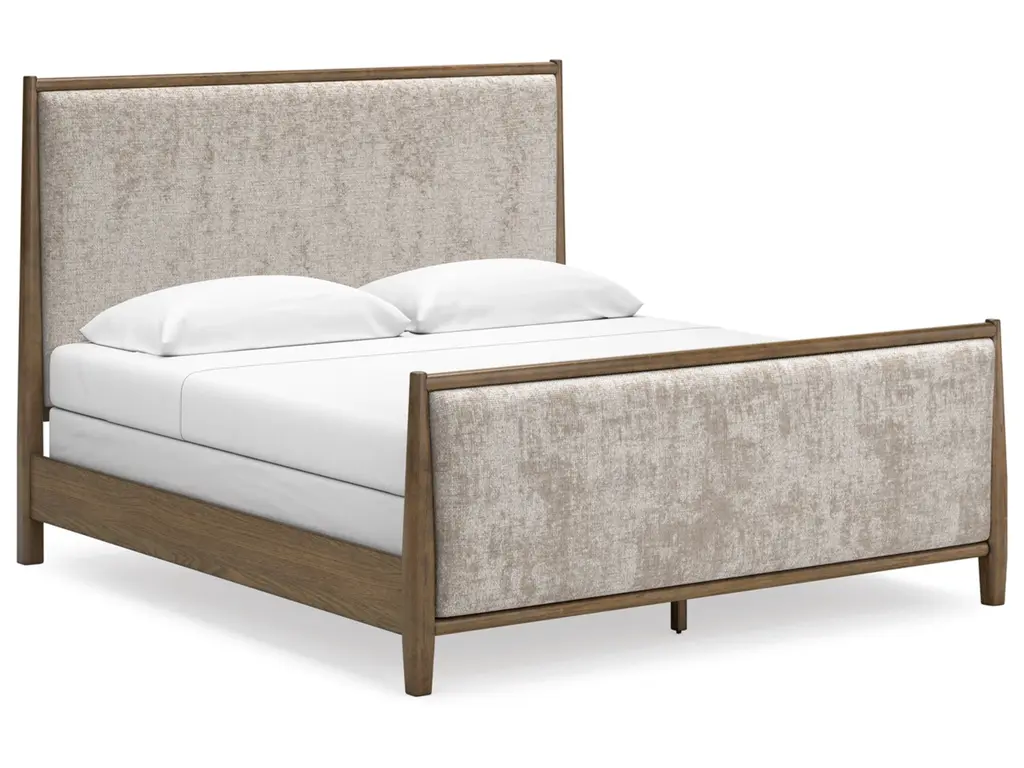 Give your mid-century modern bedroom that finishing touch with the Roanhowe bedroom package. Softly padded upholstery encased in a well-crafted frame gives you the bed of your dreams. Spacious drawers with unique wooden drawer pulls enhance the design with stunning style. This set takes minimalism to the max.
