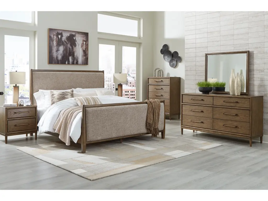 Roanhowe King Upholstered Bed With Mirrored Dresser