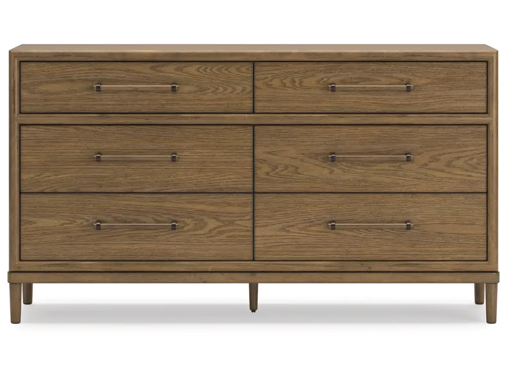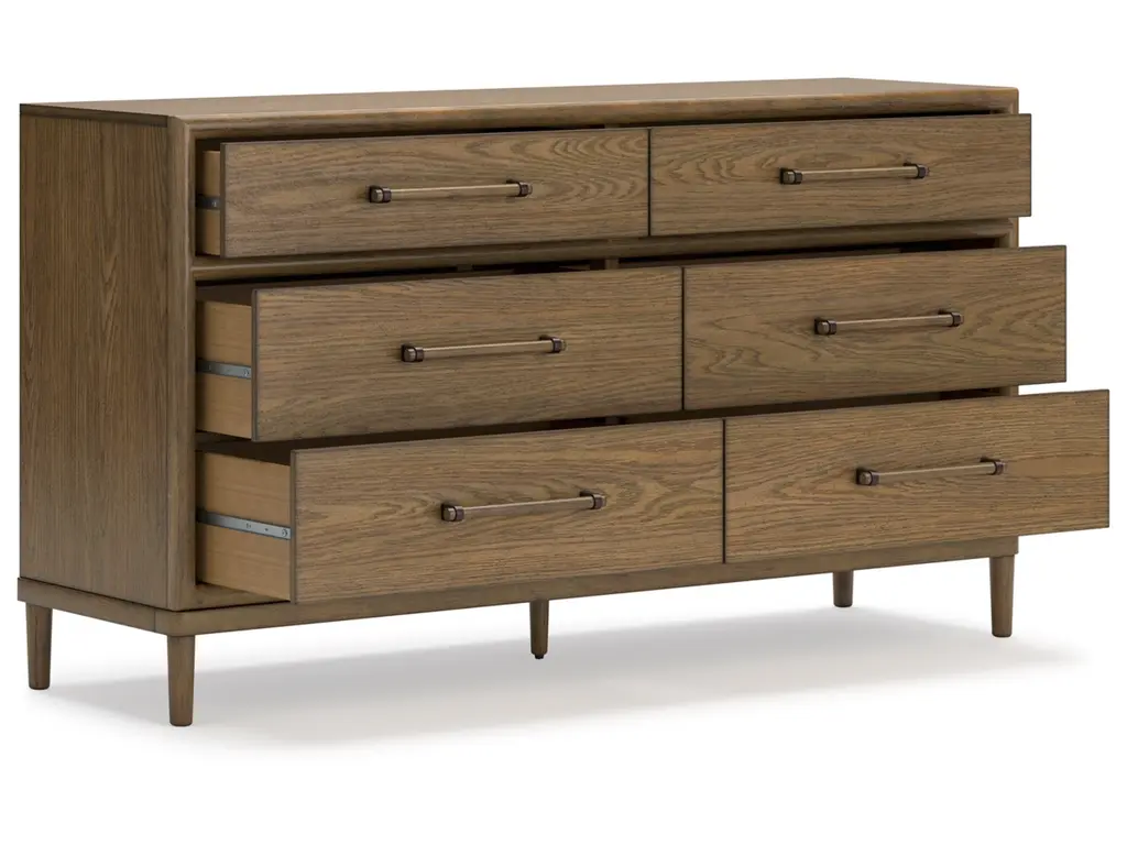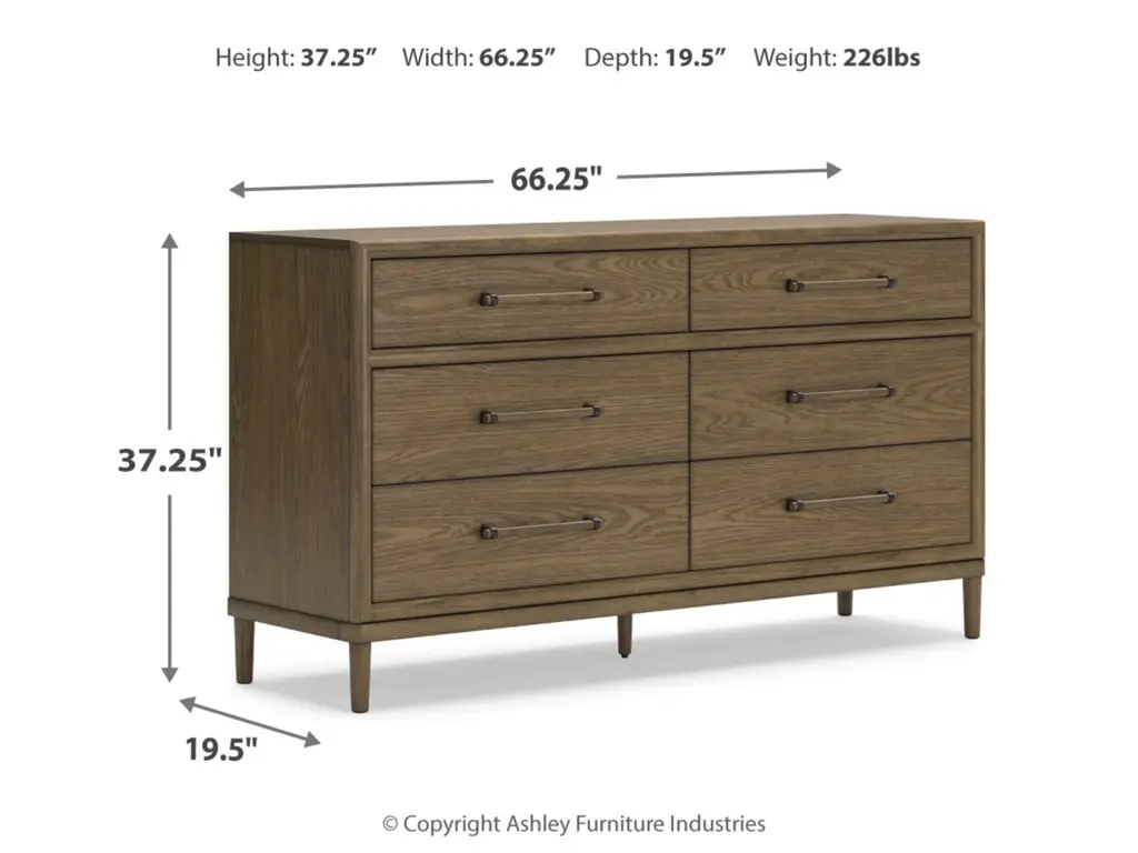Give your mid-century modern bedroom that finishing touch with the Roanhowe bedroom package. Softly padded upholstery encased in a well-crafted frame gives you the bed of your dreams. Spacious drawers with unique wooden drawer pulls enhance the design with stunning style. This set takes minimalism to the max.