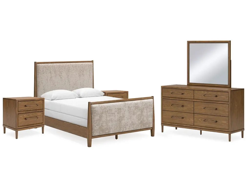 Roanhowe Queen Upholstered Bed With Mirrored Dresser And Nightstand