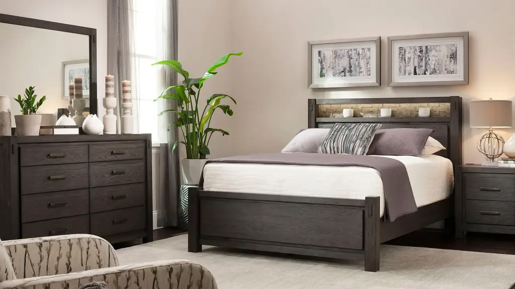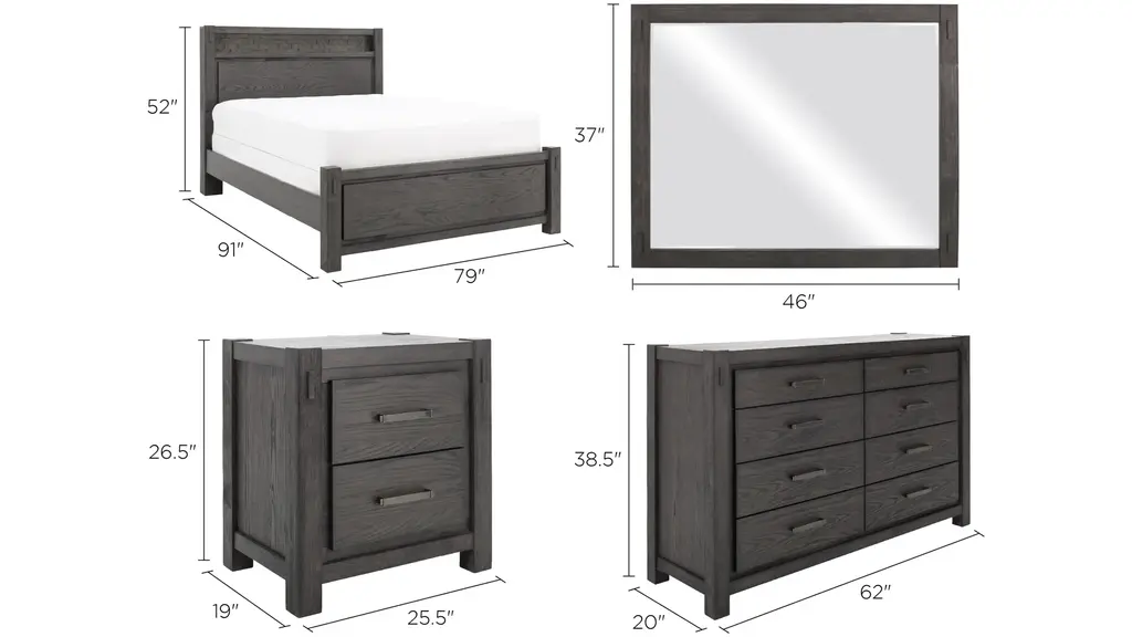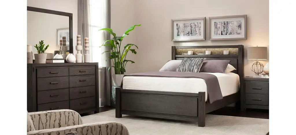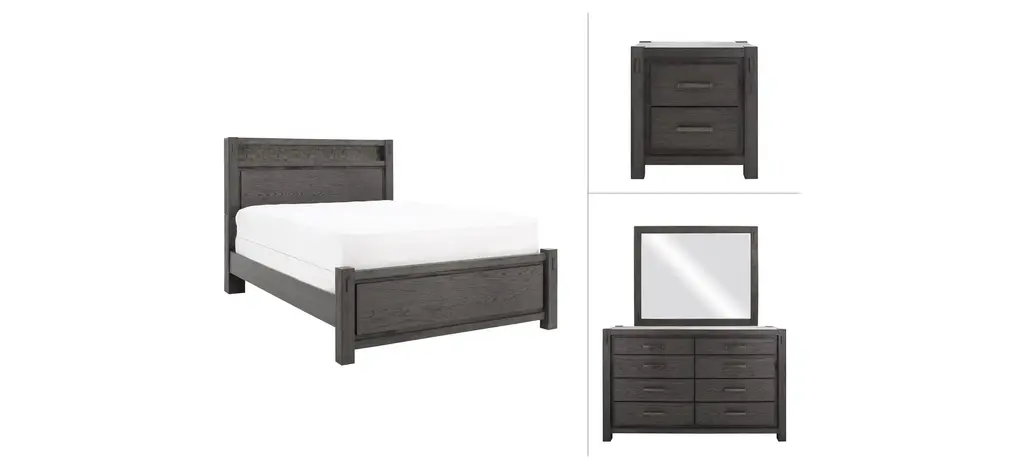 The Rockwell 4-pc. Bedroom Set blends casual styling with functionality. The bed features headboard lighting. What's more is the stunning deep wood tone of each piece, which matches well with any decor scheme. We especially appreciate Rockwell's abundant storage: 8 drawers in the dresser and 2 drawers in the nightstand equipped with a USB port in the back. What more could you want from a bedroom set that Rockwell doesn't offer?!