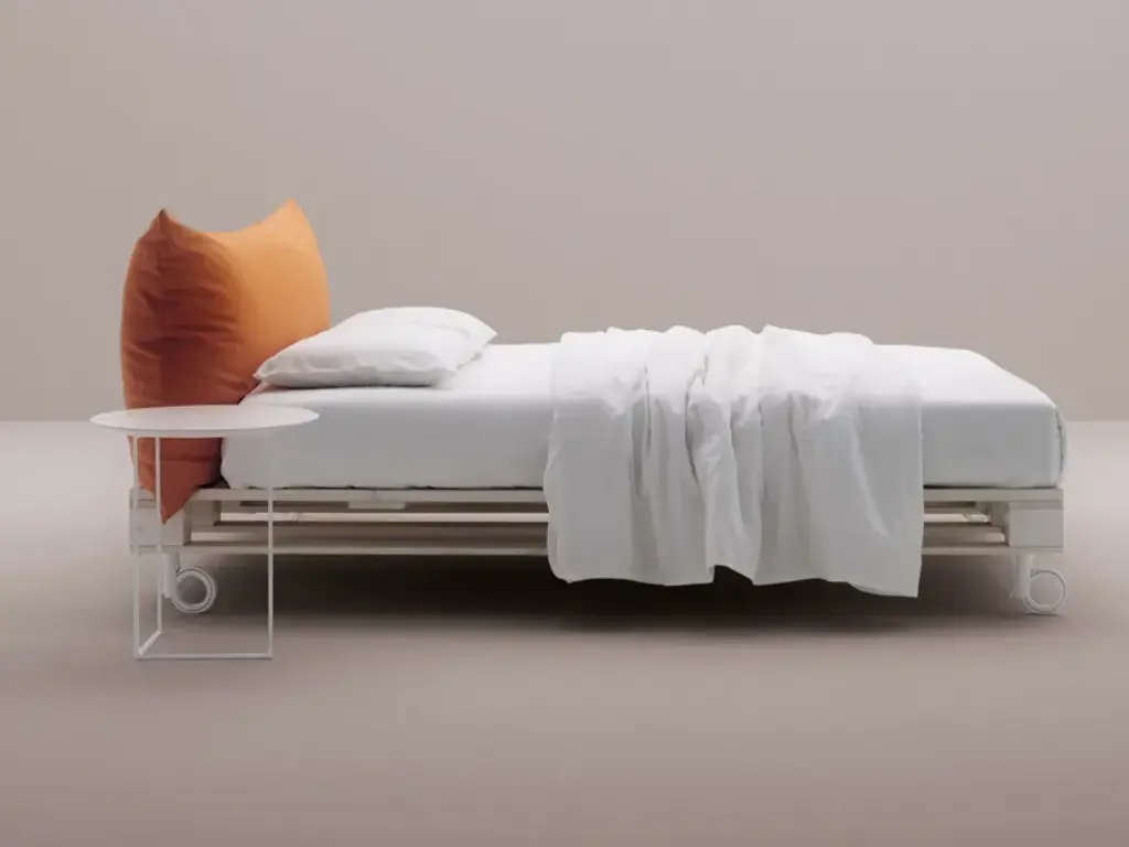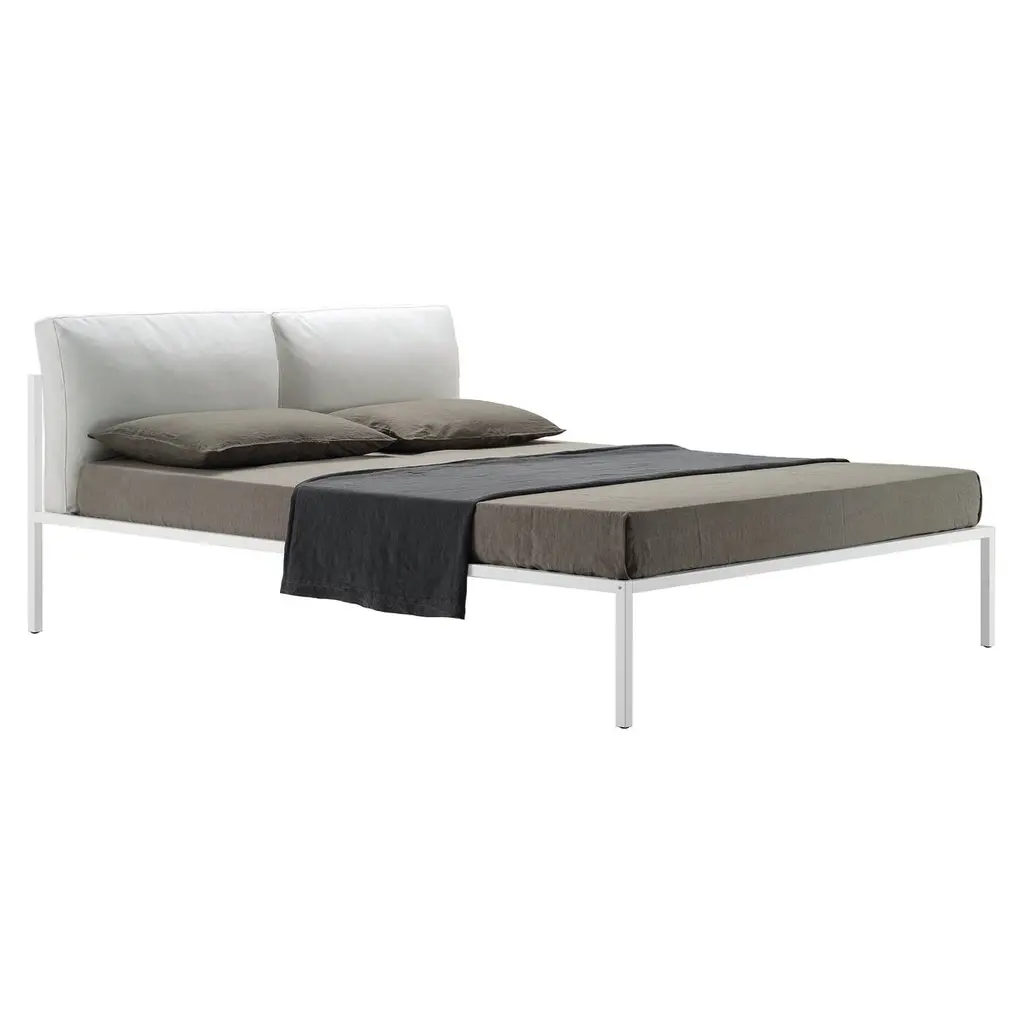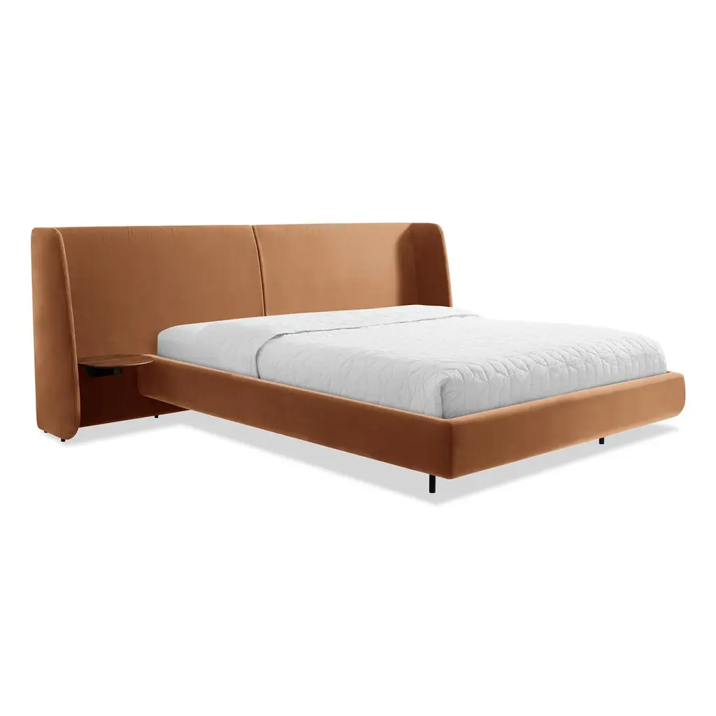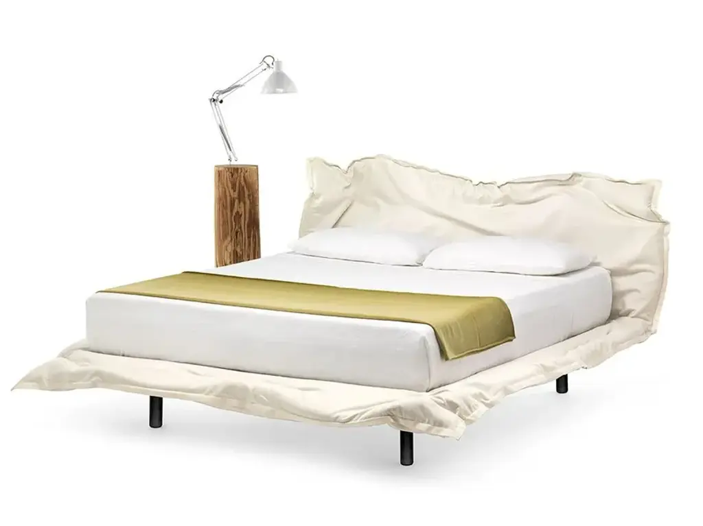 Spruce bed with removable cover on castors with upholstered headboard.Mattress not included