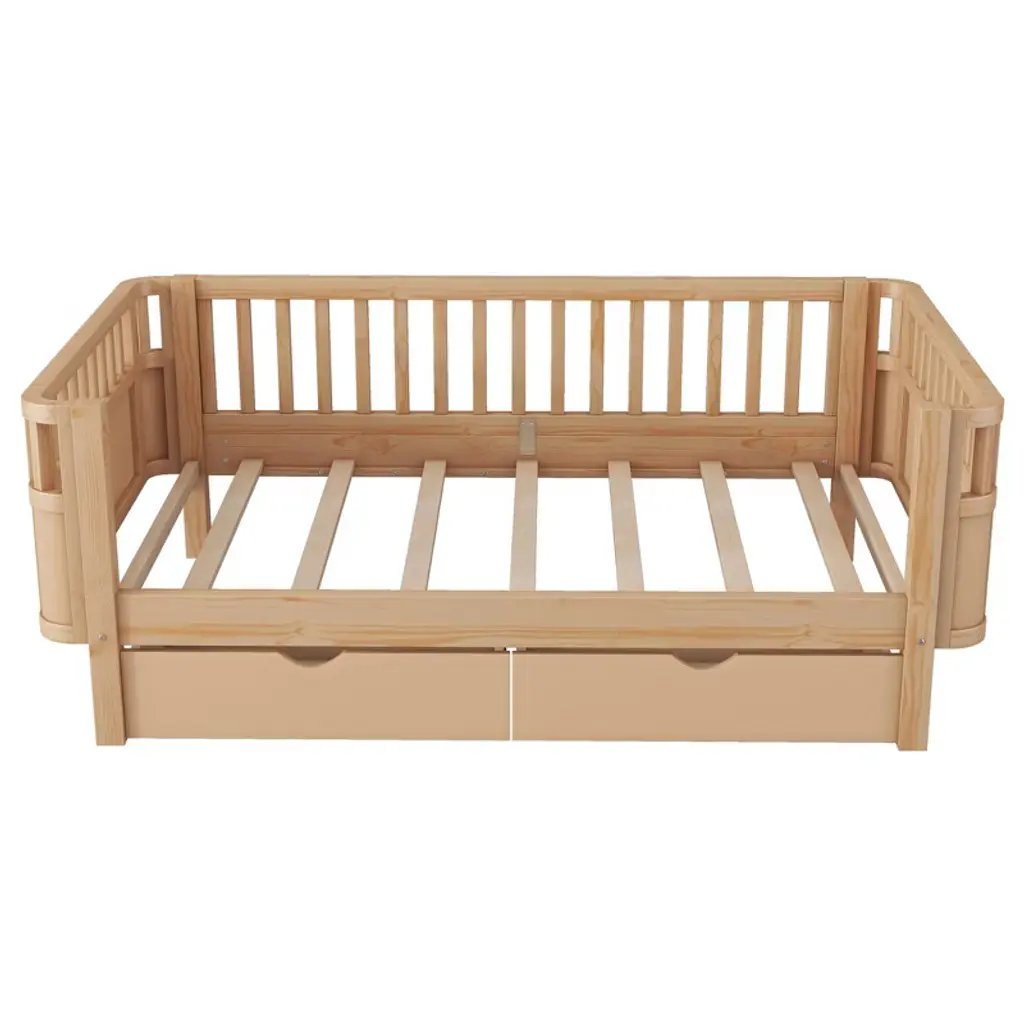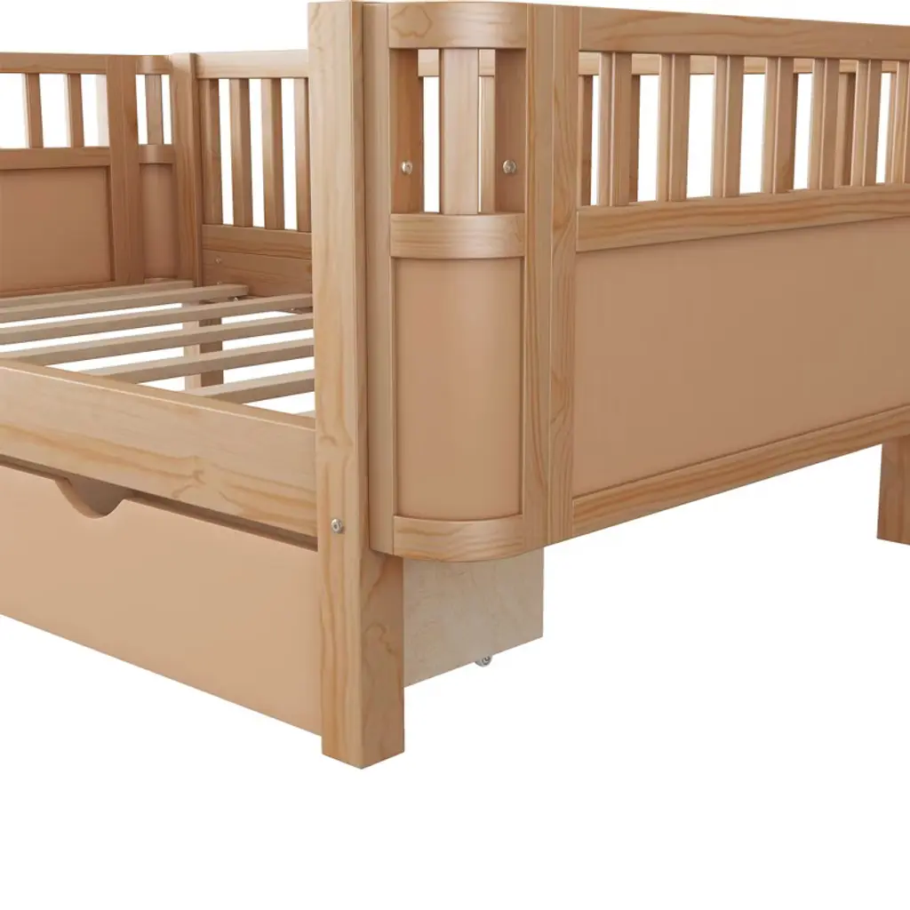 Sapphtopaz Wood Twin Size Bed Frame With Headboard & Rails For Kids Low Platform Bed With 2 Storage Drawers Bedroom Daybed For Girls And Boys,natural