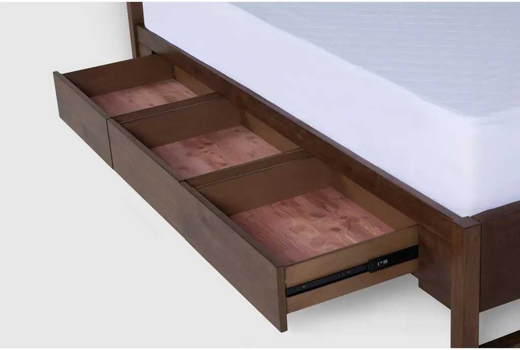 Sawyer Brown Walnut King Upholstered & Wood Platform Storage 3 Piece Bedroom Set With 2 1-Drawer C Tables With Storage