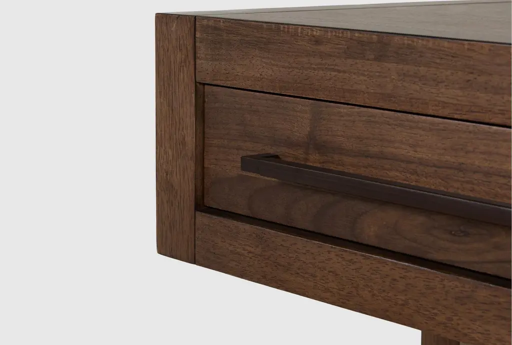 Transform your bedroom into a modern haven with the Sawyer Brown Walnut King Upholstered & Wood Platform Storage 3 Piece Bedroom Set. This set includes an Eastern King size platform bed and two 1-drawer C tables with storage, creating a cohesive and functional space. The medium walnut color, combined with a mix of walnut veneer and solid rubberwood, offers a sophisticated yet contemporary look.