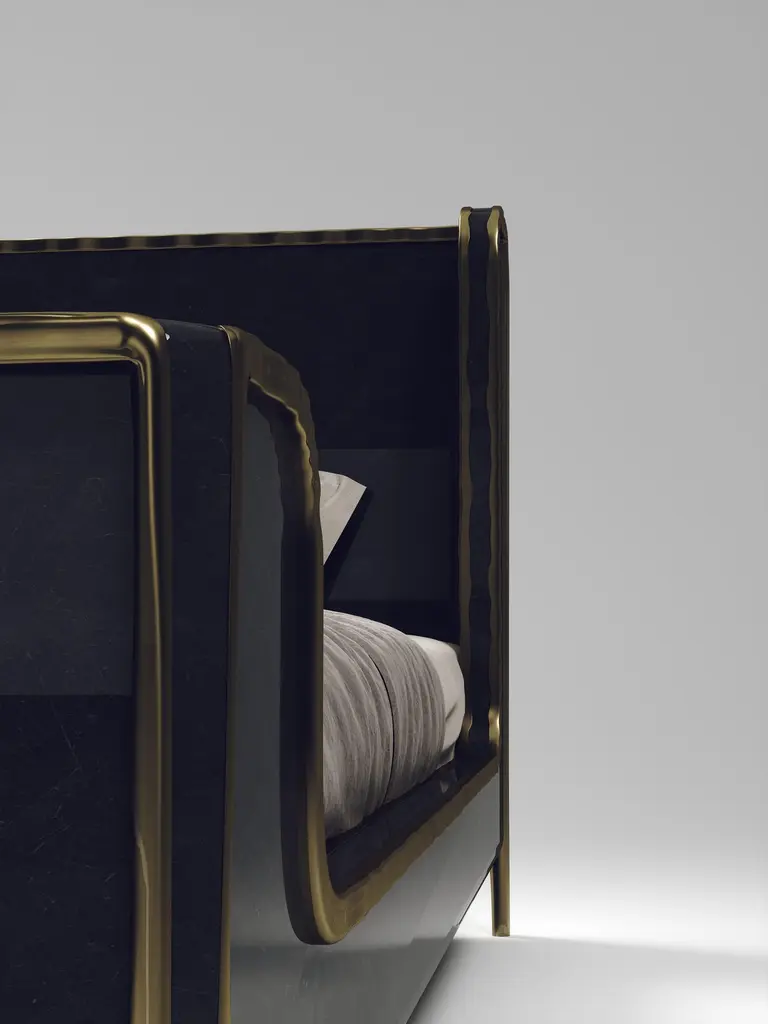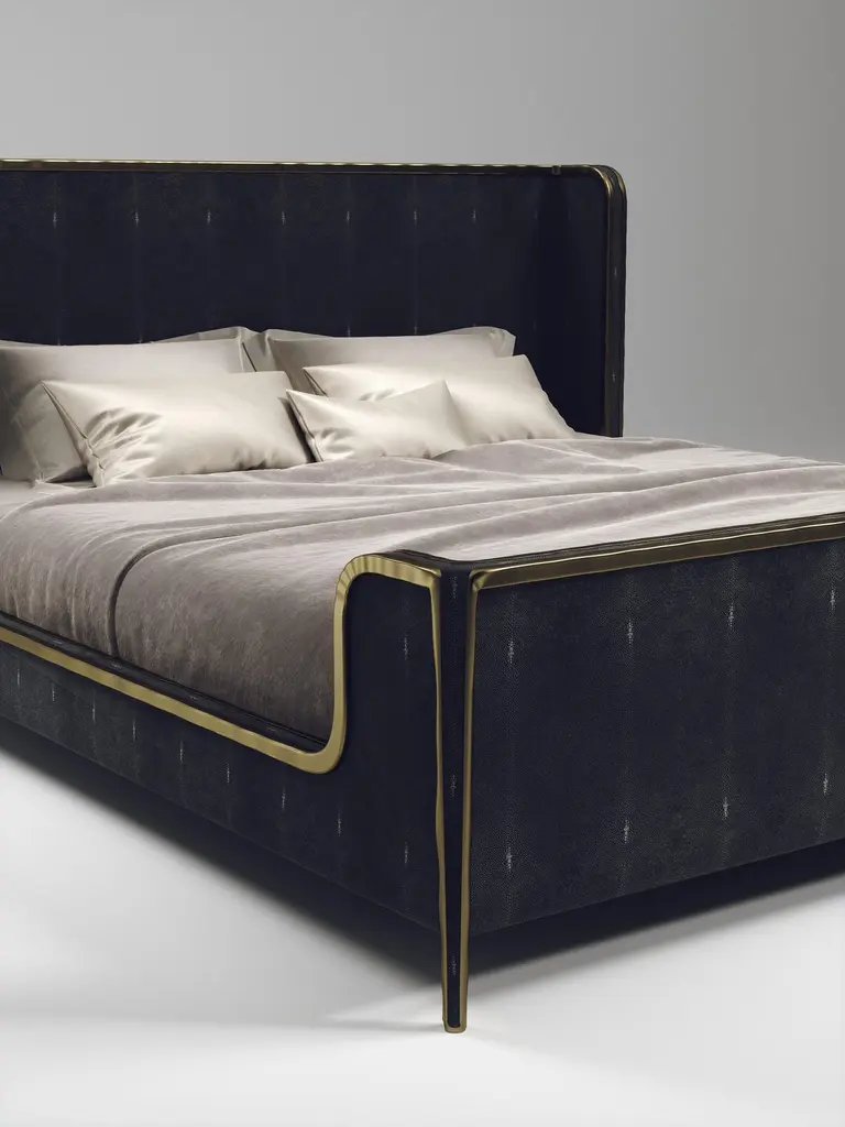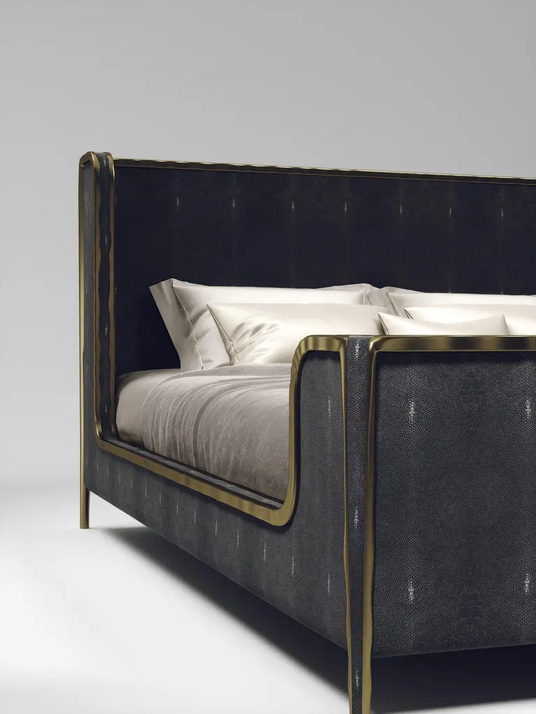 Shagreen Bed With Bronze-Patina Brass Details By R&y Augousti