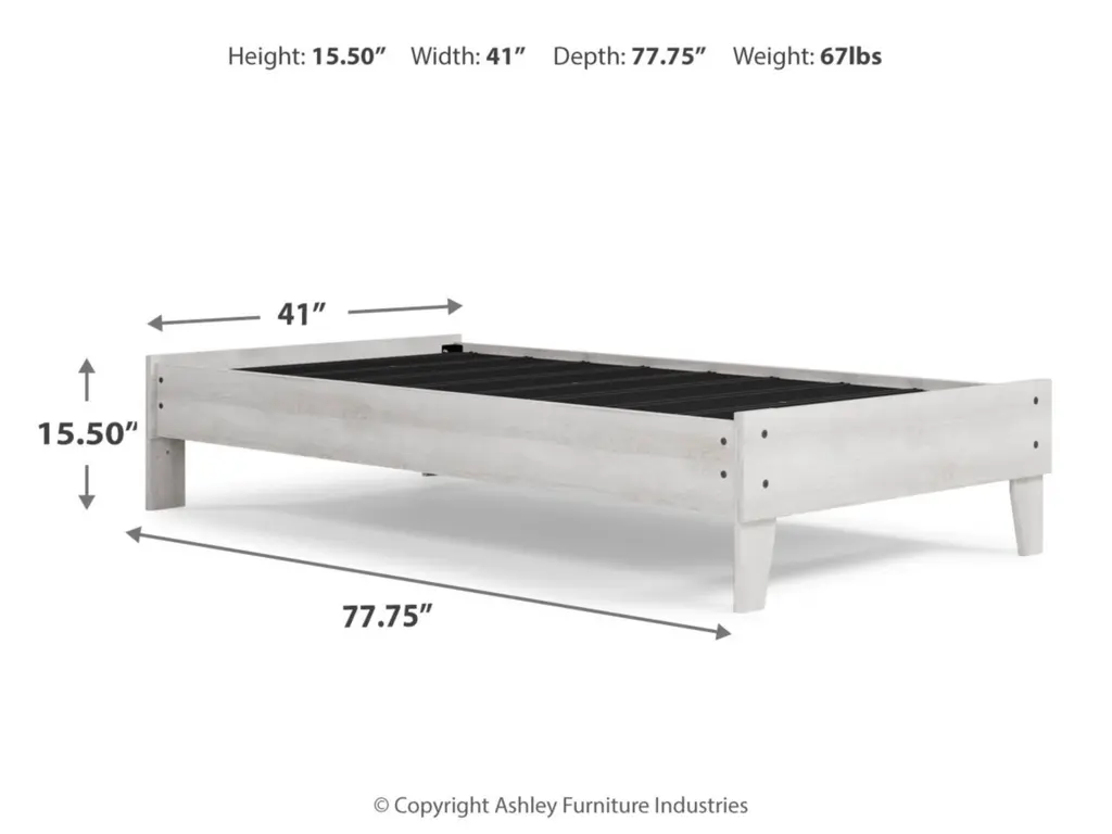 Give provincial a new meaning with the chic look of the Shawburn twin platform bed. The whitewash distressed finish keeps this piece light and fresh, as does its minimalist aesthetic. When it comes to your comfort, discover the Chime 12-inch twin mattress. Its thick layer of memory foam contours to your body, delivering amazing support, pressure relief and comfort. The memory foam layer is supported by a super thick layer of firm support foam. This mattress arrives in a box for easy setup.