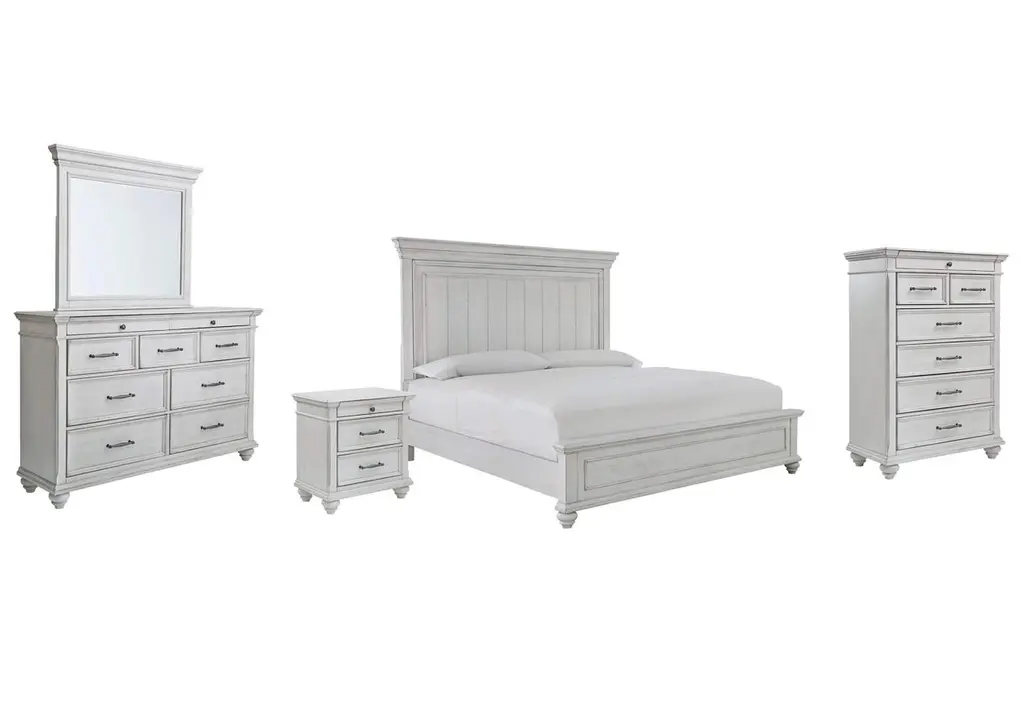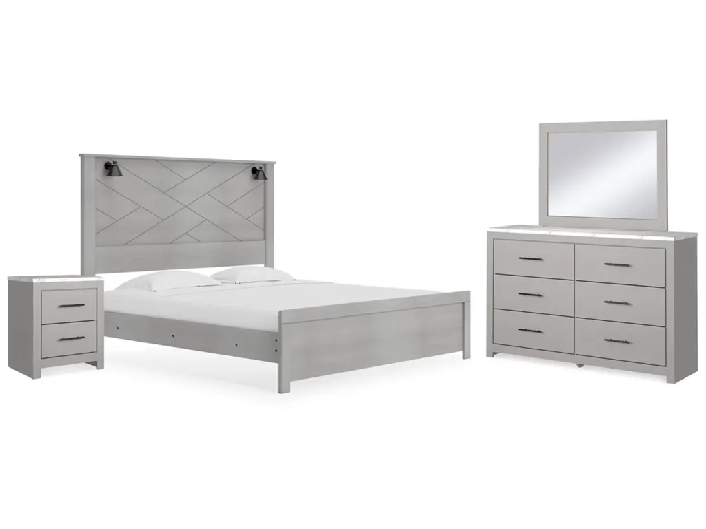 Sinclair Pebble Queen Wood & Upholstered Panel 4 Piece Bedroom Set