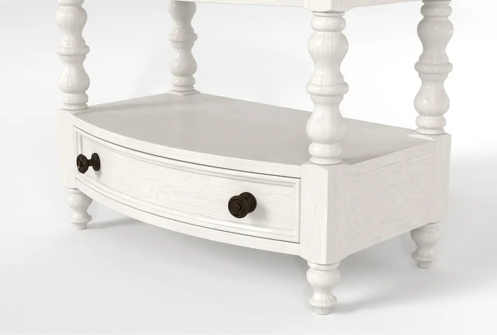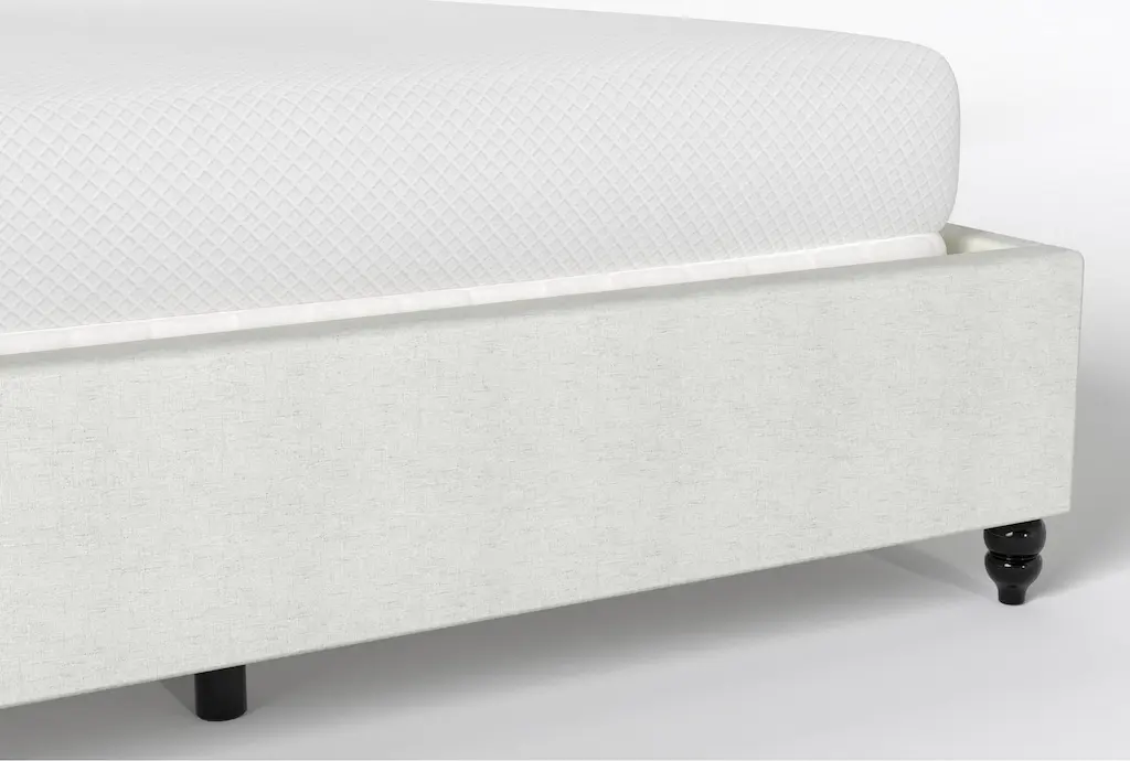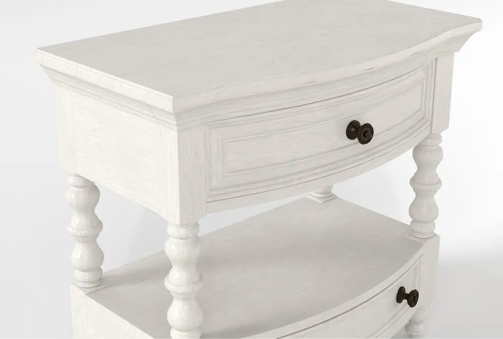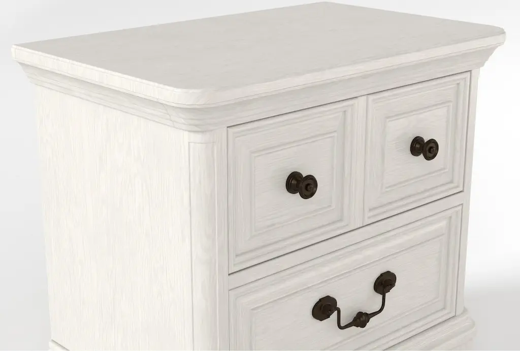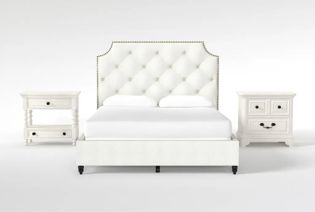 Sophia White II King Upholstered Panel 3 Piece Bedroom Set With Kincaid White 2-Drawer Nightstand + Open Nightstand