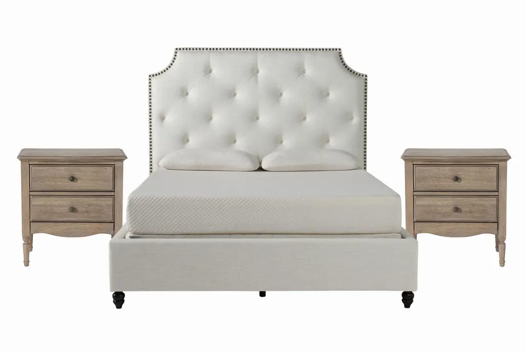 Sophia White II Queen Upholstered Storage 3 Piece Bedroom Set With 2 Deliah II 3-Drawer Nightstands