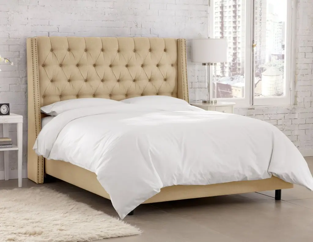 Sophia Wingback Bed With Nailheads, Linen
