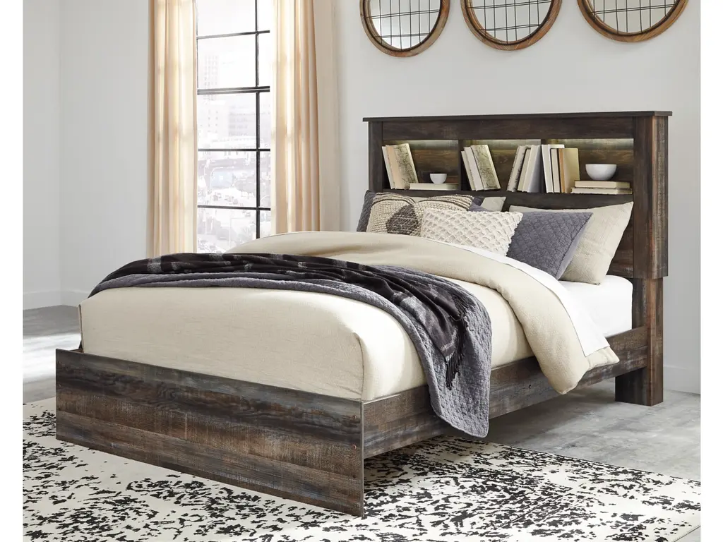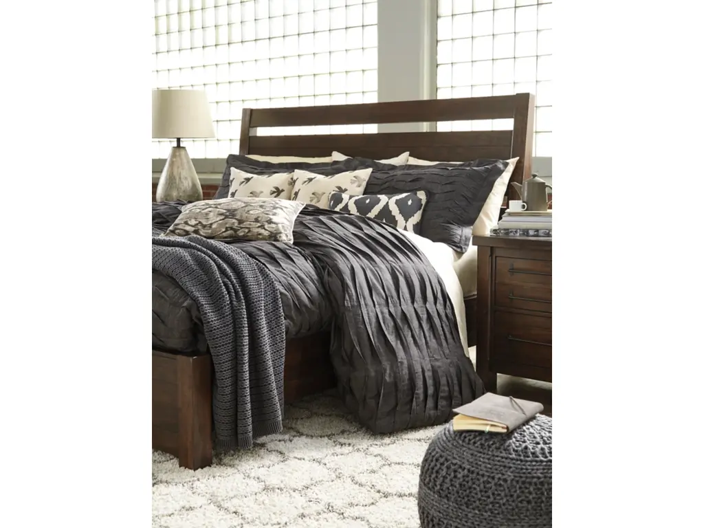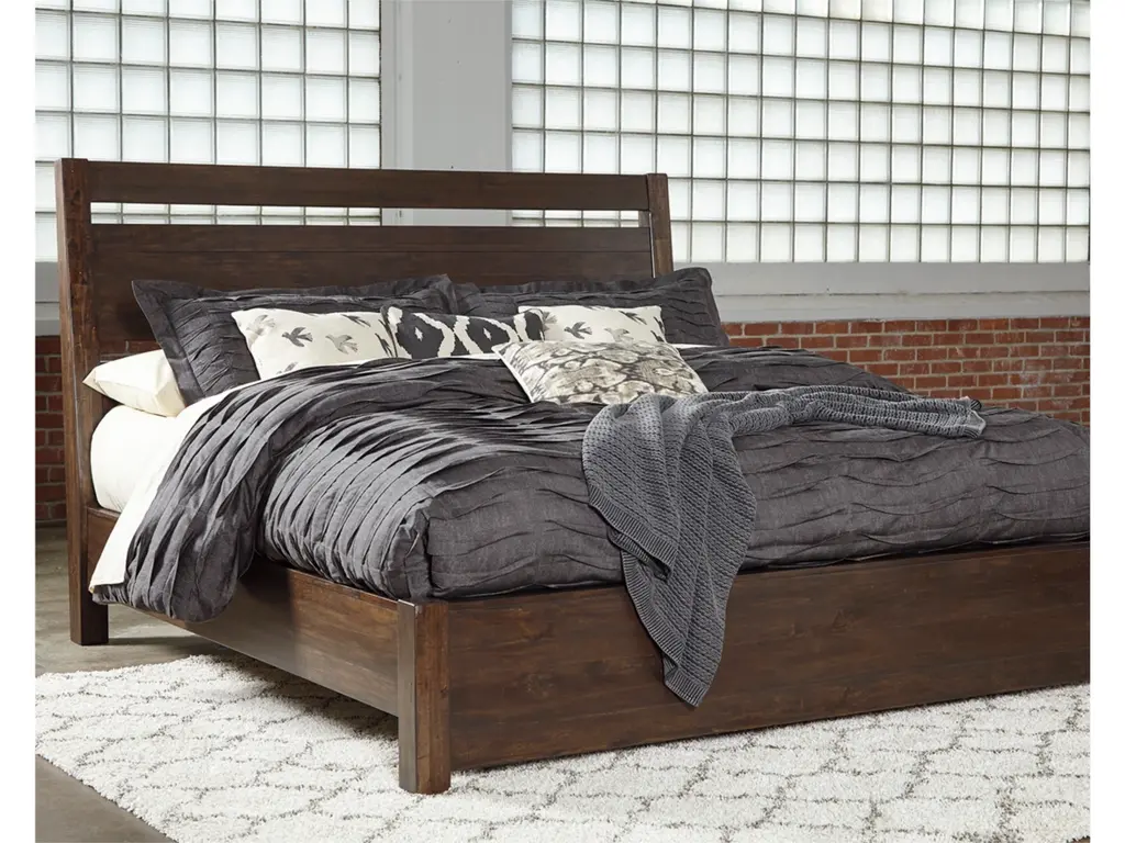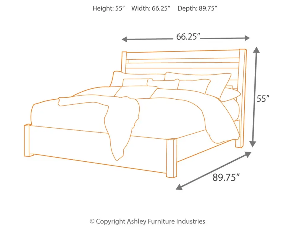 For fans of urban industrial design, the Starmore queen panel bed and mattress clearly steal the show. The bed's blend of acacia veneer and wood is beautified with an oiled walnut-tone finish for a highly contemporary aesthetic with natural, grainy character. Open plank detailing on the headboard and low-profile footboard perfect the look from head to toe. The 10-inch Chime mattress with soothing memory foam contours to your body, while a thick layer of firm support foam provides plentiful support and pressure relief of your body’s major pressure points. The hypoallergenic material makes it ideal for sufferers of allergies for ultimate undisturbed sleep–not to mention peace of mind. Plus, this mattress arrives in a box for quick and easy setup. Simply bring it to your room, remove the plastic wrap and unroll. You’ll be amazed at how it fully expands within minutes. Foundation/box spring available, sold separately.