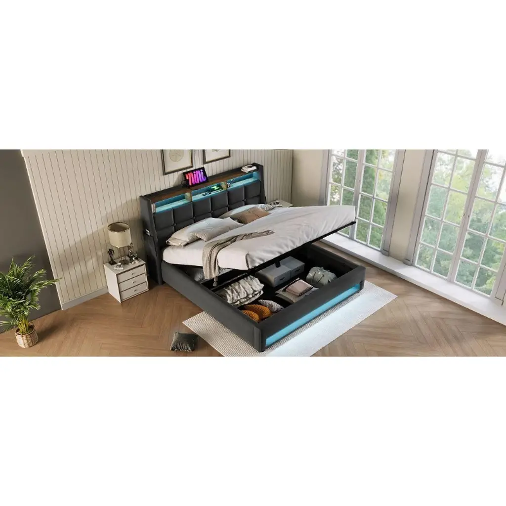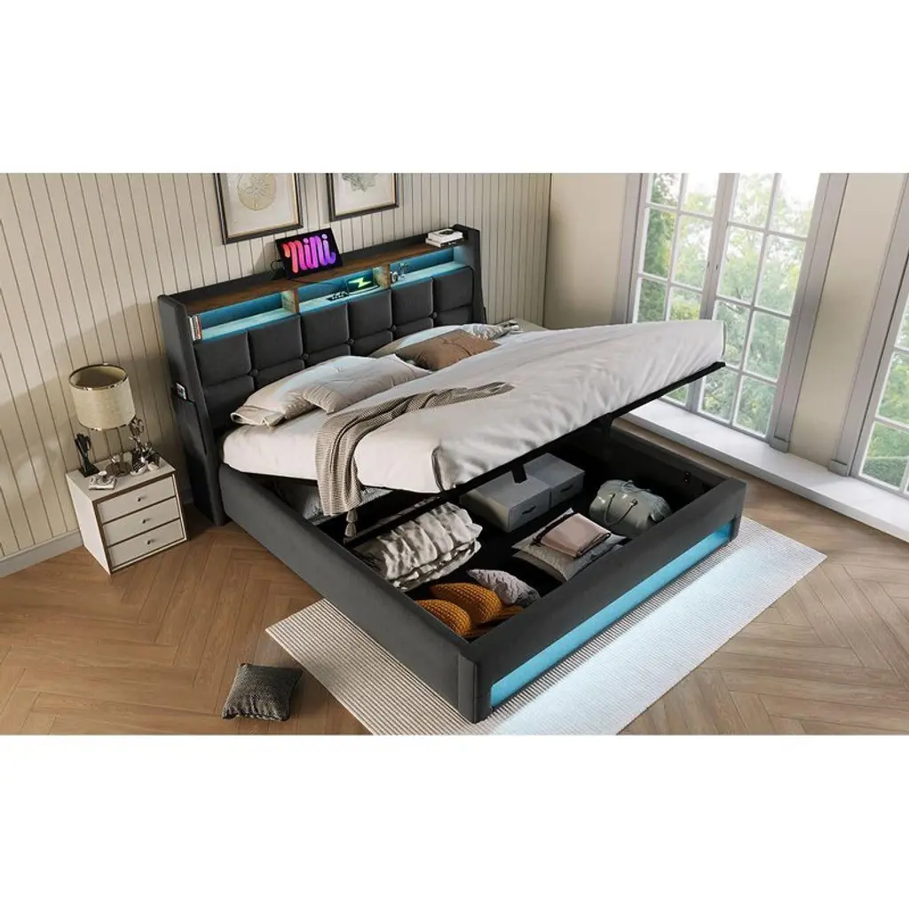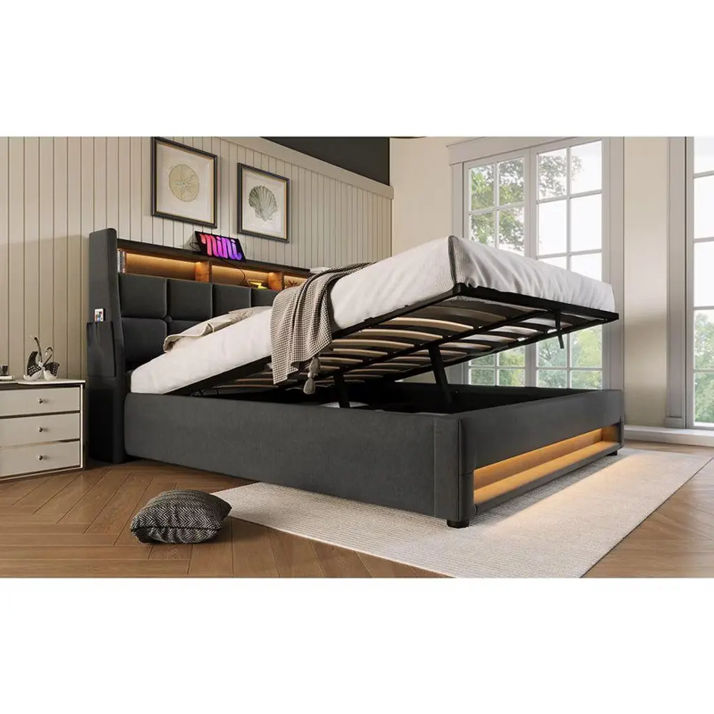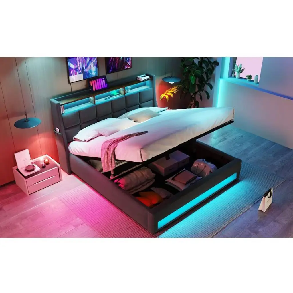 Streamdale Queen Size Upholstered Platform Bed With A Hydraulic Storage System, Led And Usb Charging, Grey (Without Mattress)