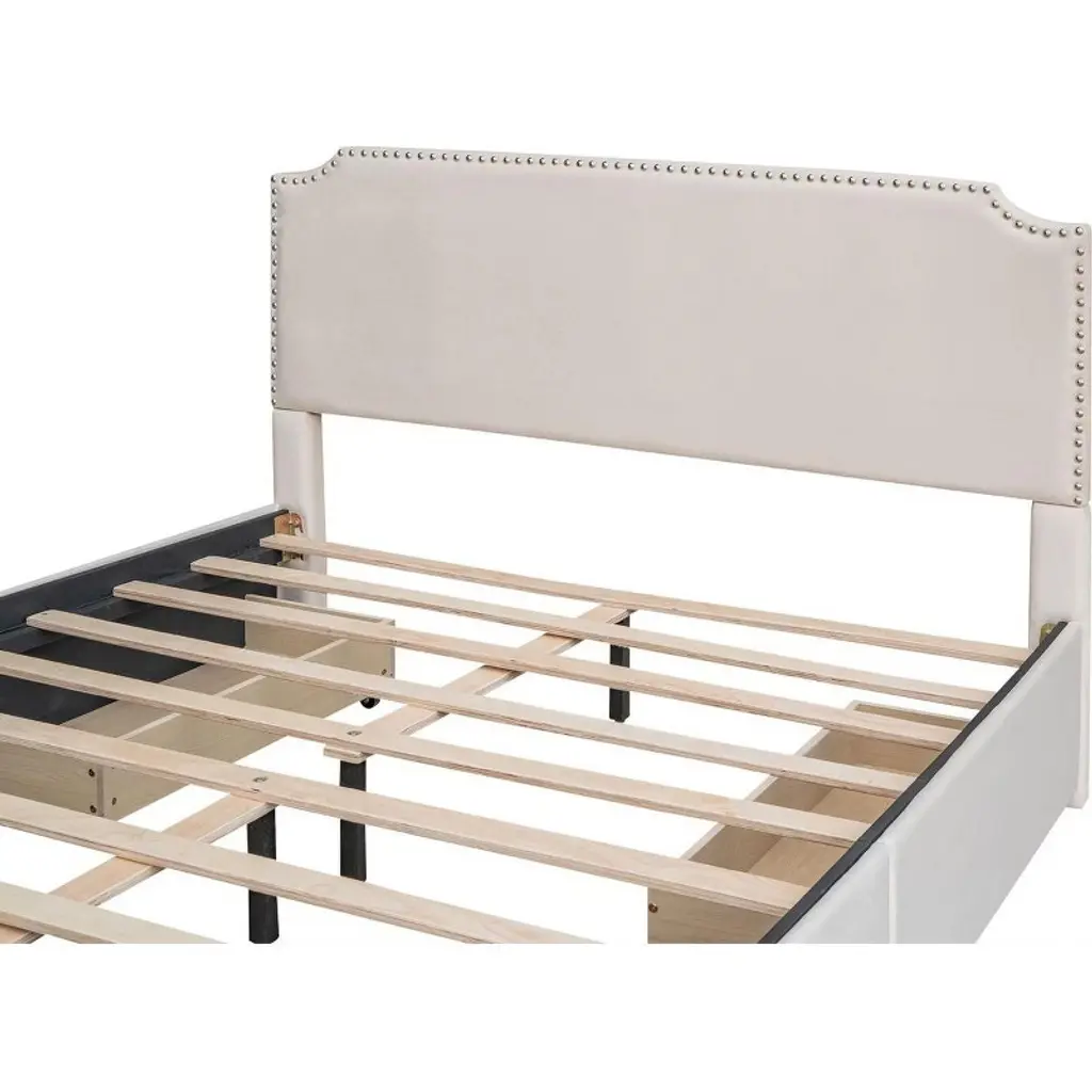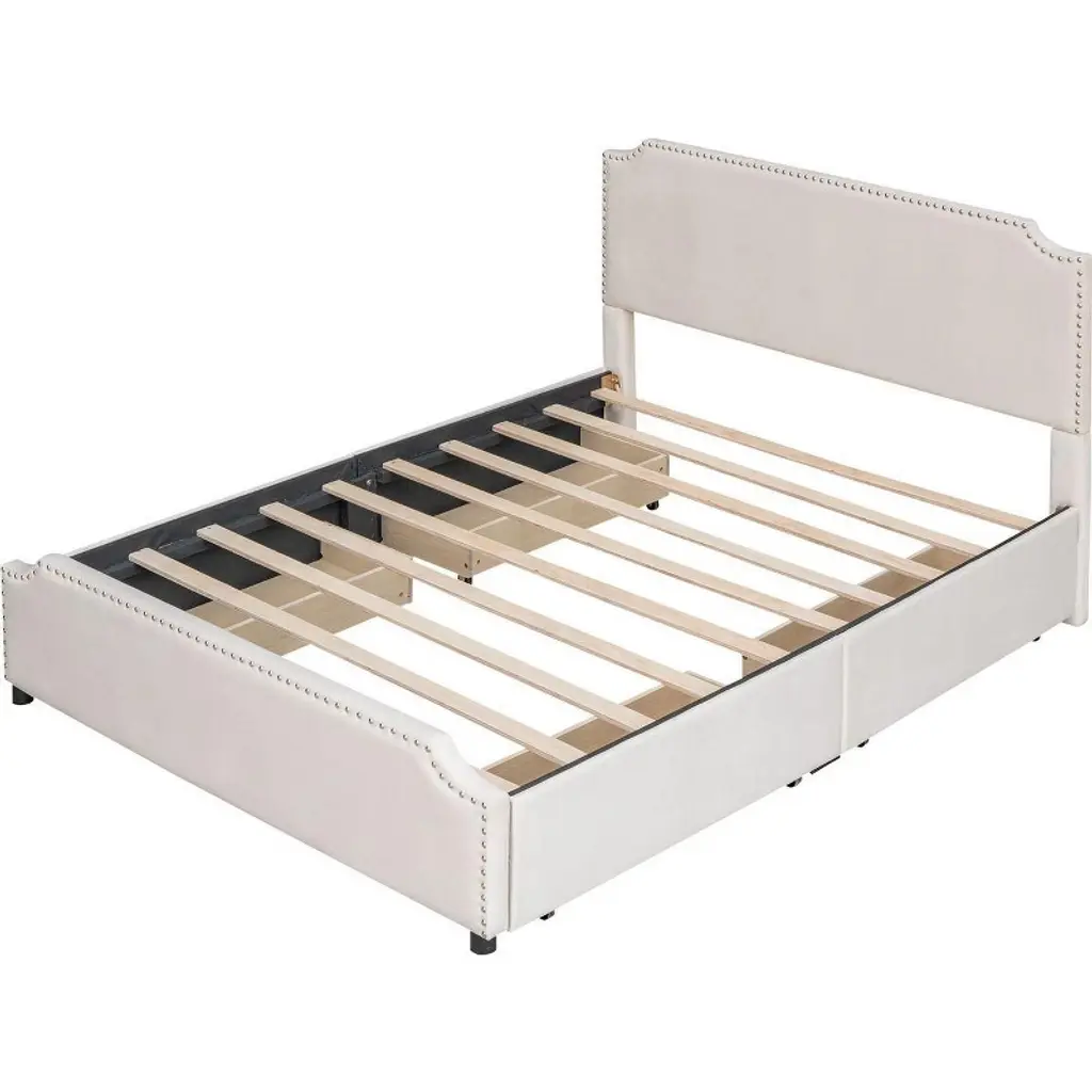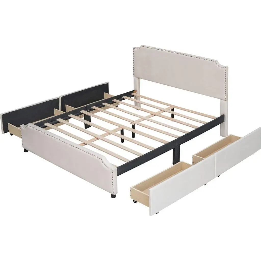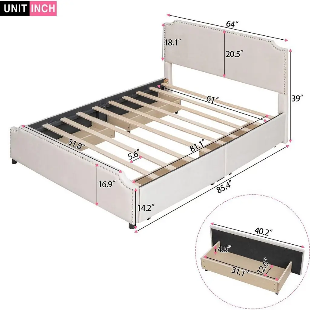 Streamdale Upholstered Platform Bed With Stud Trim Headboard And Footboard And 4 Drawers No Box Spring Needed, Velvet Fabric, Queen Size (Beige)