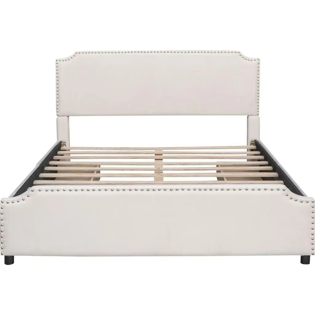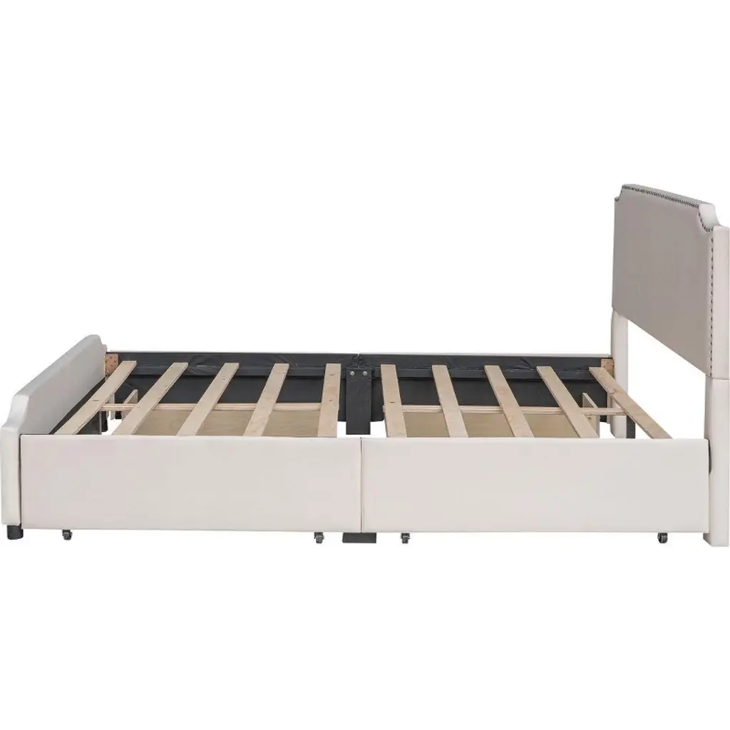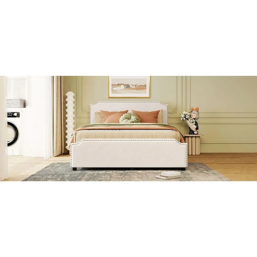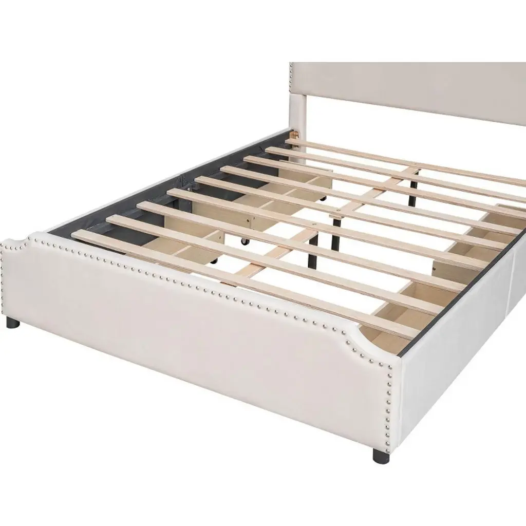 Streamdale Upholstered Platform Bed With Stud Trim Headboard And Footboard And 4 Drawers No Box Spring Needed, Velvet Fabric, Queen Size (Beige)