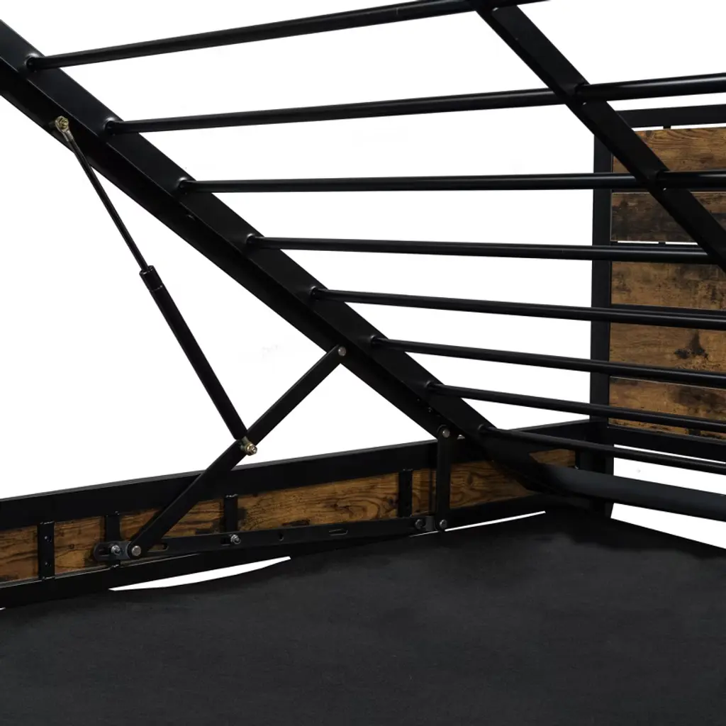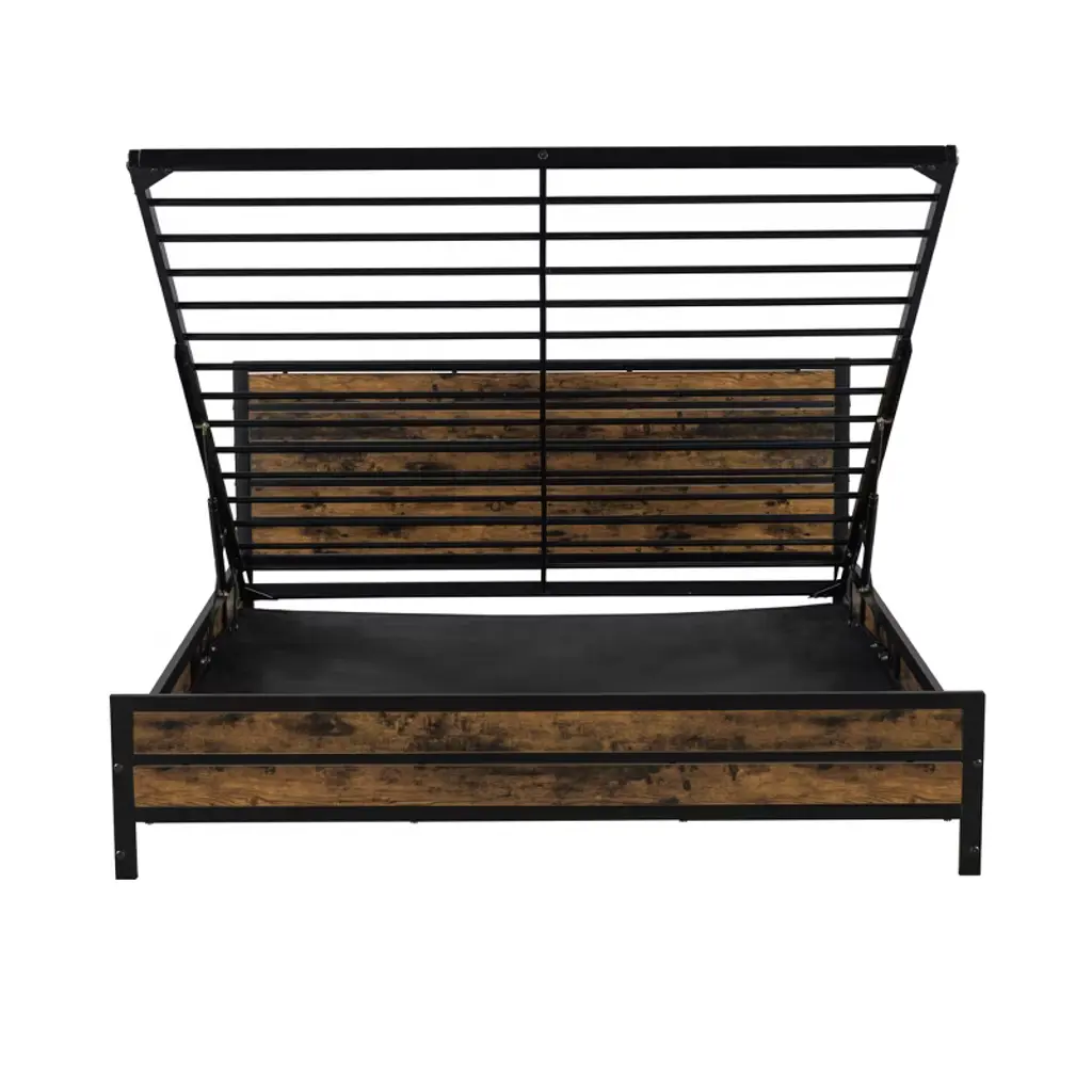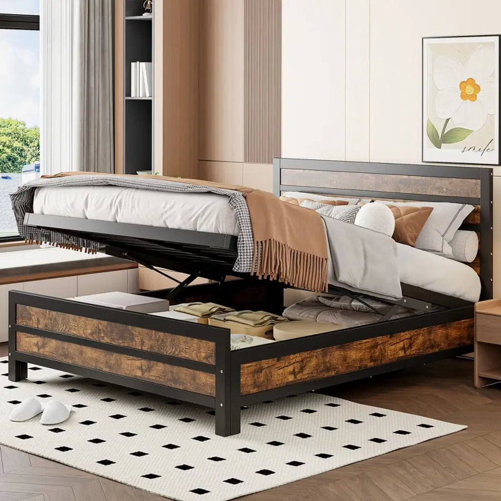 Tiramisubest Queen Size Metal Platform Bed With Underneath Storage, Lift Up Storage Bed Frame With Headboard And Slats Support For Bedroom