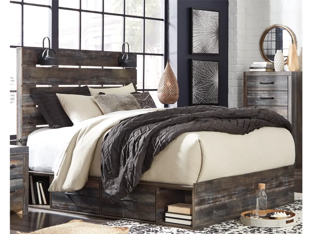Simple and natural, the metal platform bed with storage will make a lasting impression in your room. Sturdy metal frame construction and a metal slat system to add extra stability and safety. The underneath storage make storing your bedroom things in smaller spaces possible.