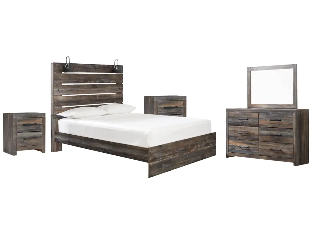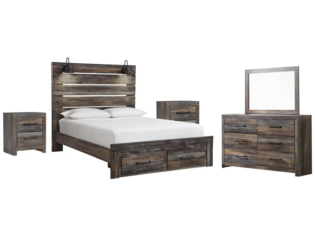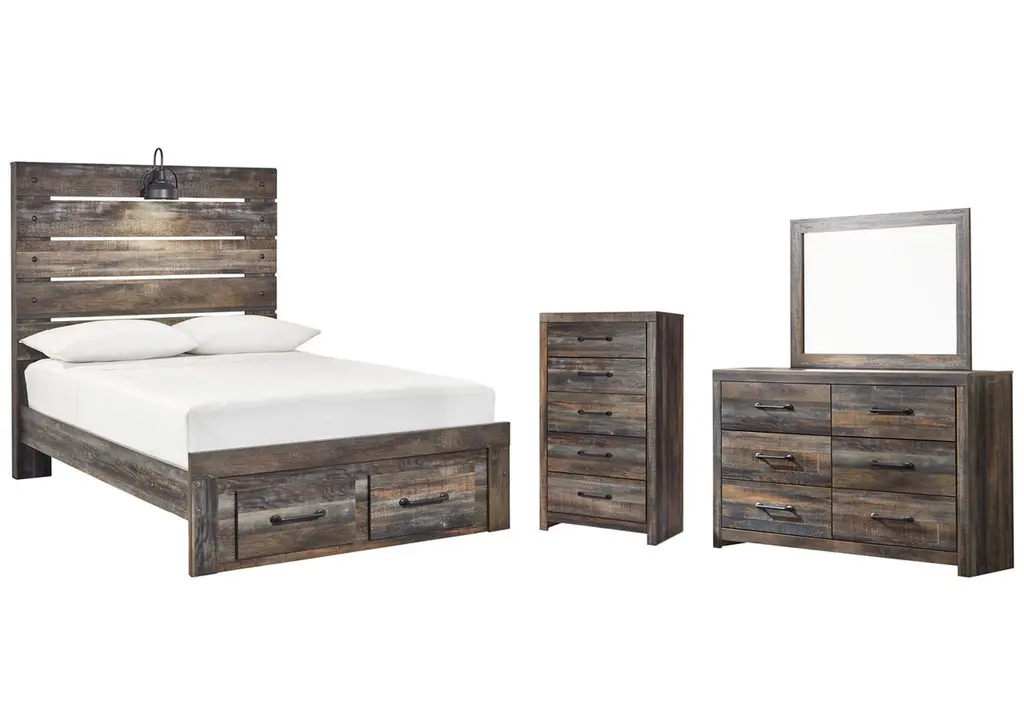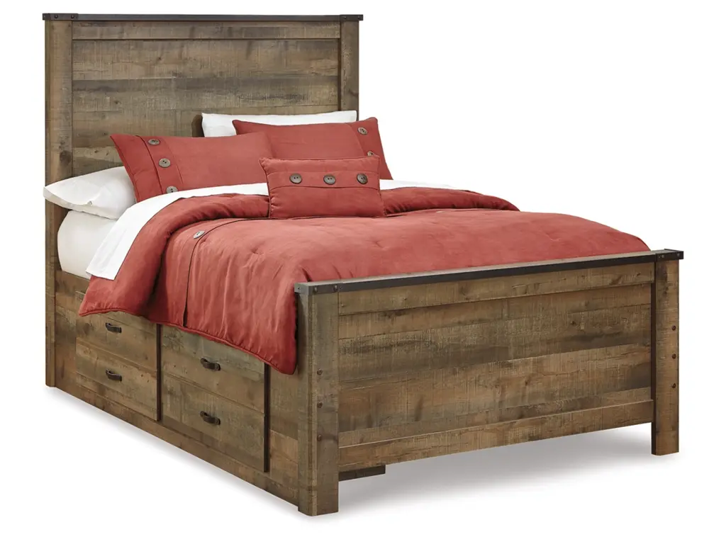 Trinell Full Panel Bed With 2 Storage Drawers With Mirrored Dresser